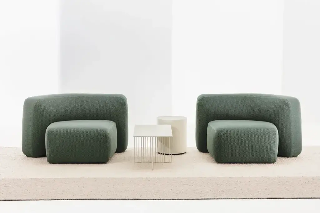 Suiseki is a collection of padded seats inspired – as its name suggests – by the Japanese art of arranging naturally occurring stones. Spontaneous, harmonious lack of alignment takes the place of geometric shapes in the simple modular units with organic volumes. Everything starts with three core building blocks: a low, broad seat, a backrest and an armrest. They can be combined with each other in an offset display of heights, widths and depths. The resulting sofas are sculpturesque and suitable for all types of use, in everything from the contract market to private homes.