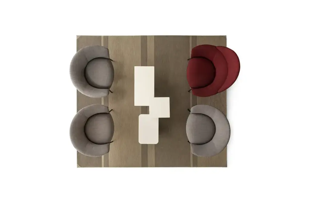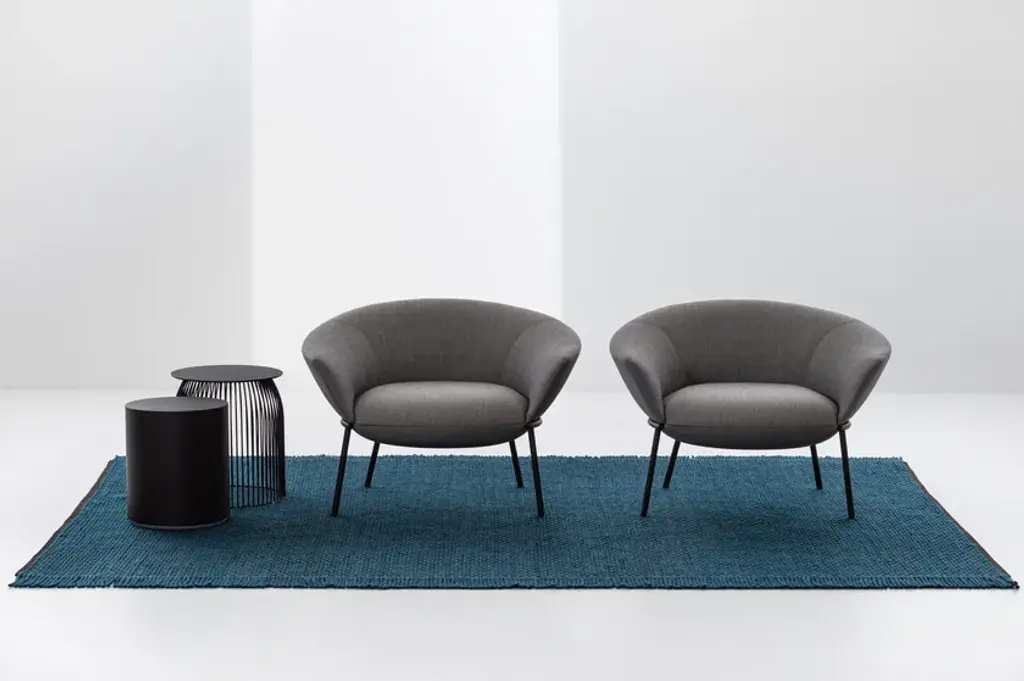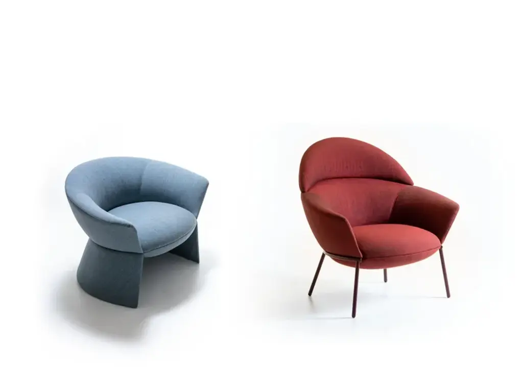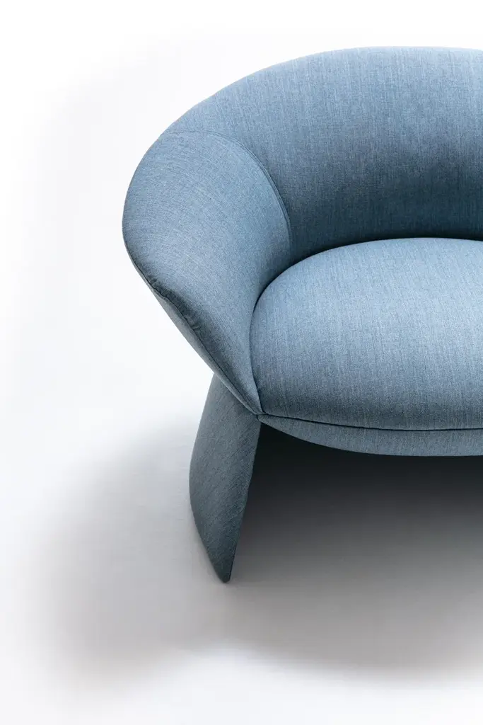 Thanks to an abundant and generous structure, the Swale armchair evokes relaxed conversation scenarios for residential and contract environments. The comfort of the seating is given by its large and enveloping shapes, expertly reproduced in the seat and back elements. In its version with headrest, Swale represents a refined reading sitting; the low back, on the other hand, allows effective use in contract environments, where Swale brings the best features of a domestic upholstery.- Reinforced frame for public area use- Flame-retardant polyurethane foam- Undeformable polyurethane foam of different densities- Reinforced stitching with carbon fiber support- Bases customizable with other colors on customer’s request