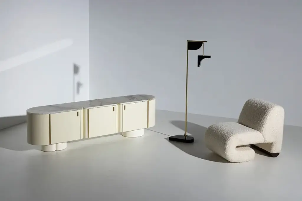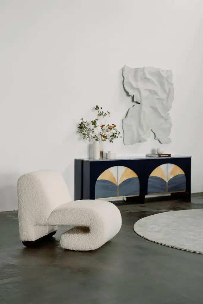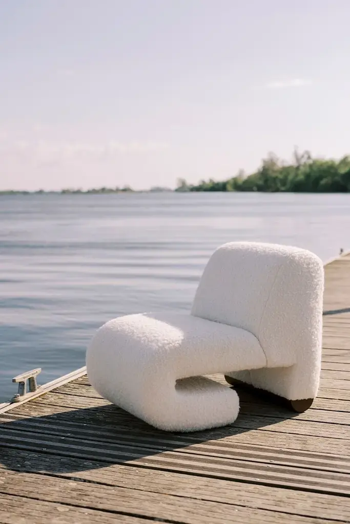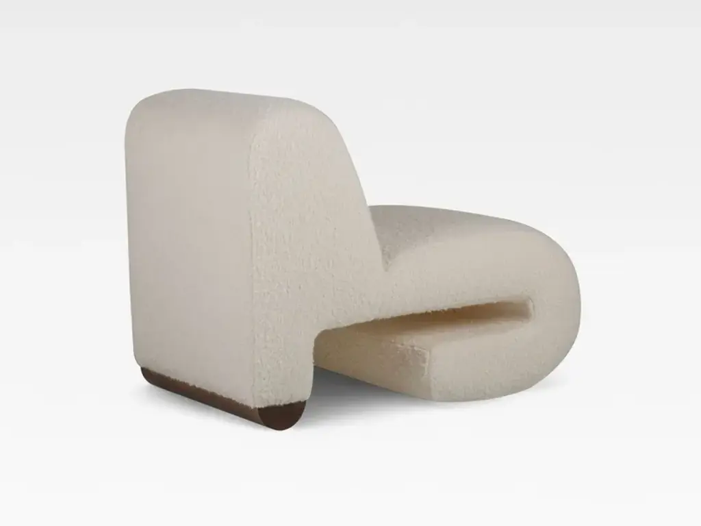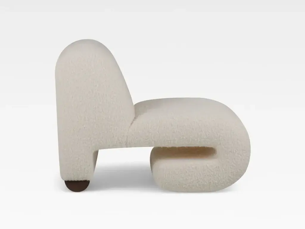 The elegant and slim silhouette of the T50 armchair adds a modern touch to the retro design of the 50’s. Thanks to its simplicity and upholstered comfort, this armchair is a synthesis of style and relaxation. The American oak detail on the frame is the perfect complement to the “5” wooden shape upholstered in white wool bouclé fabric.Materials & FinishesWD137 American Oak; light brown stain; matt finishM104362 Beige wool bouclé fabric