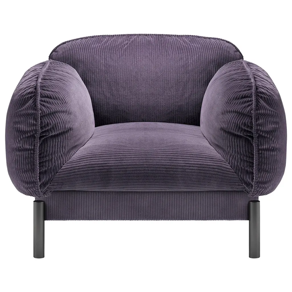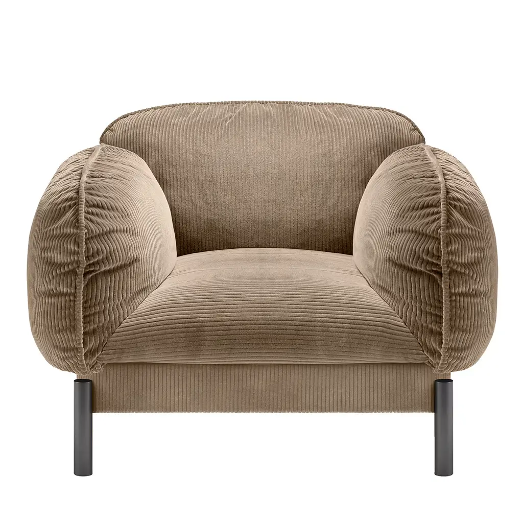 Enhancing any modern or traditional sitting area with its captivating design, this exquisite armchair exudes refined comfort and sophistication. Mounted on a brass structure with short cylindrical-shaped feet, it is distinguished by a welcoming and embracing seat with padded back and armrests upholstered in lavish, green-dyed velvet. For the US market, please contact the Concierge for CAL TB 117 certified fabrics.
