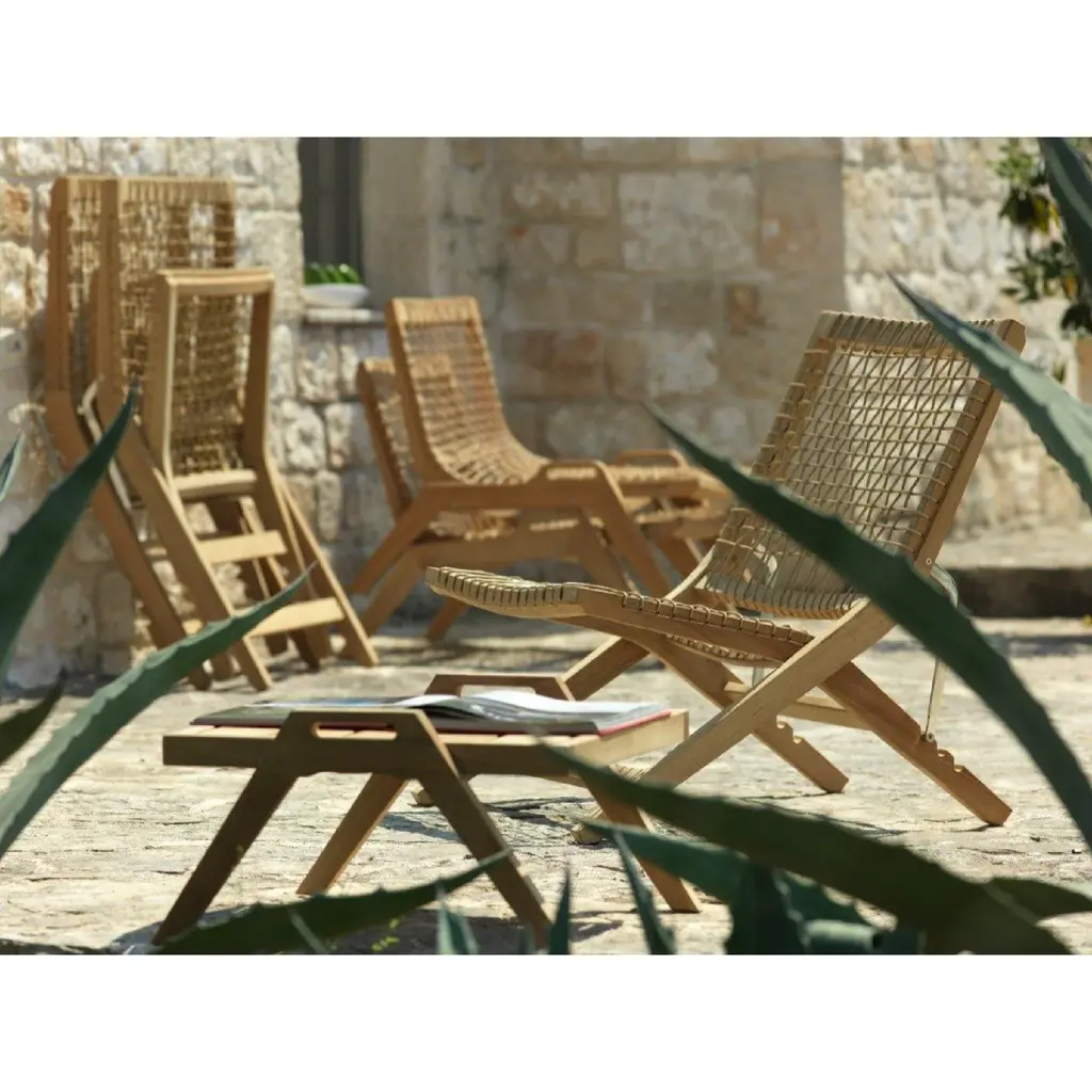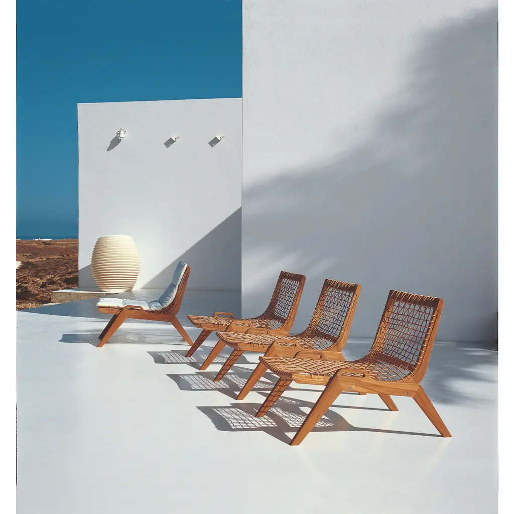 Add an elegant touch to your outdoor space with the Synthesis garden armchair. Crafted with teak and hand-woven WaProLace, this lounge chair offers durability and a refined, weather-resistant weave. Complete with a cushion in a sophisticated Nuvola color, this chair is the perfect combination of design and functionality, perfect for relaxation in style.