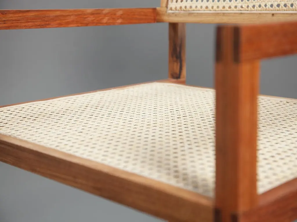 The first piece of the Square Series, it is a light and airy item with straight lines and angles. Made from Freijó wood, it's highly comfortable and durable. The seat and backrest are crafted from natural Indian straw. It can also be produced in Sucupira or Jequitibá wood. As they are natural materials, wood, straw and leather may have different tones and textures than those shown in the photos.About the design:Amilcar Oliveira hails from São Paulo, the capital city. He studied Radio and TV at ECA-USP and worked as a director at production companies like Sentimental Filmes and Your Mamma. Currently, he's part of the directorial roster at Mixer. In parallel, he studied carpentry at the Cosi de Legno school under Piero Calò, carrying on the teachings he received from his father and grandfather, who were both carpenters deeply passionate about this craft. Amidst the pandemic, he created his debut piece, the Square Armchair, and launched am.o, an artisanal design brand featuring his creations.