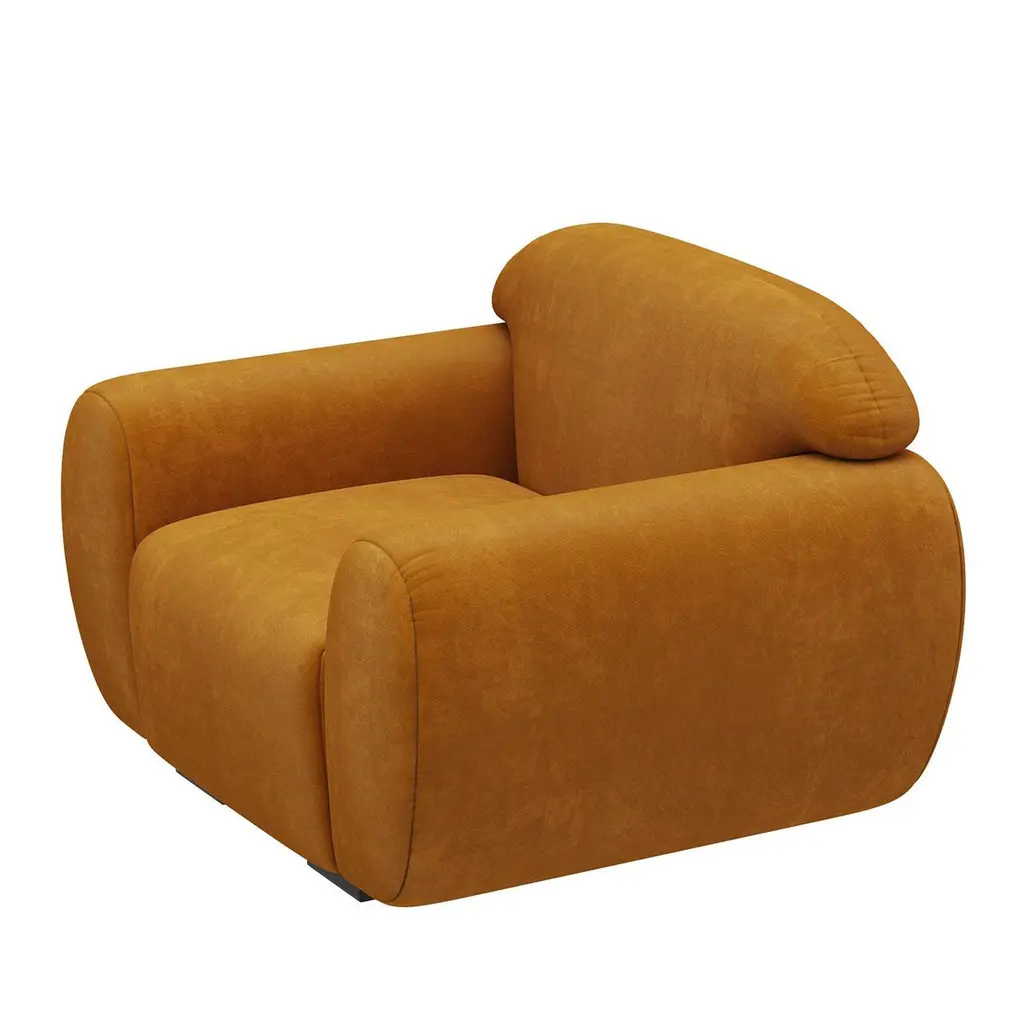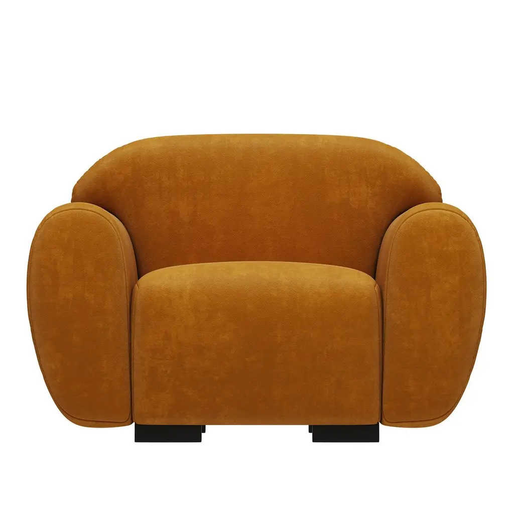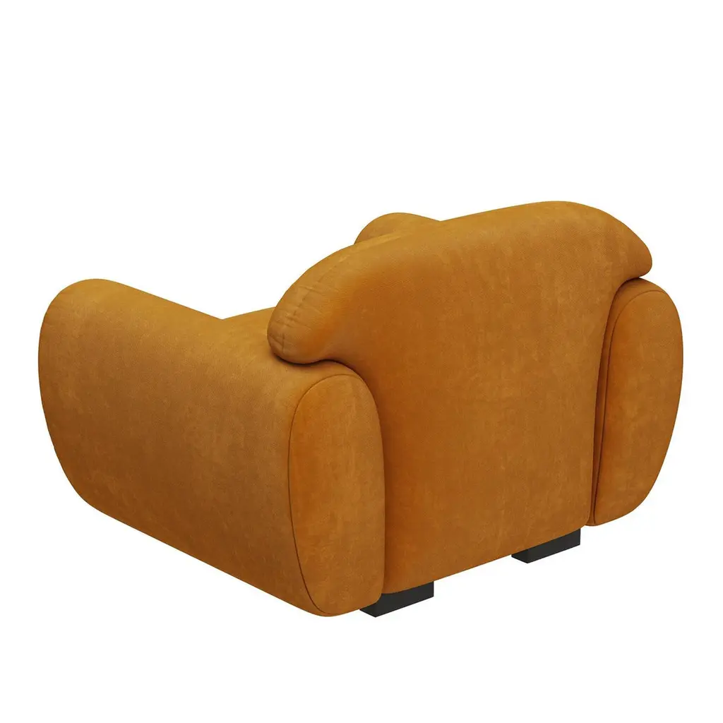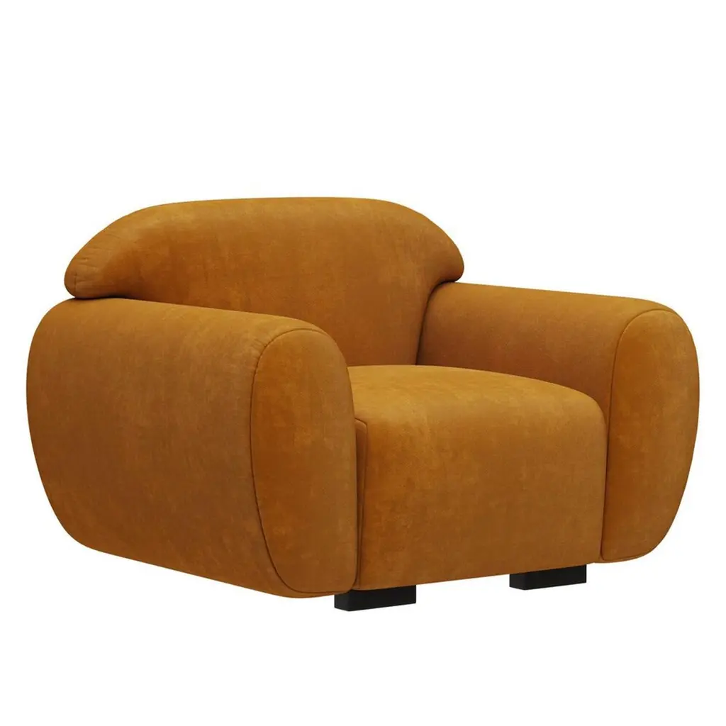 Armchair and stool Theodor set composed of 1 armchair and 1 stool,with solid wood structure, upholstered and covered with cotton velvet fabric in fadded orange finish. Feet in ash wood in satinated wenge in matte varnish finish.Armchair and stool Theodor set. Price: 11500,00€.Armchair: L 115 x D 102 x H 78cm, seat height: 43cm. Price: 8900,00€.Stool: L 69 x D 69 x H 45cm. Price: 2600,00€.Also available with other fabric and finishes on request.