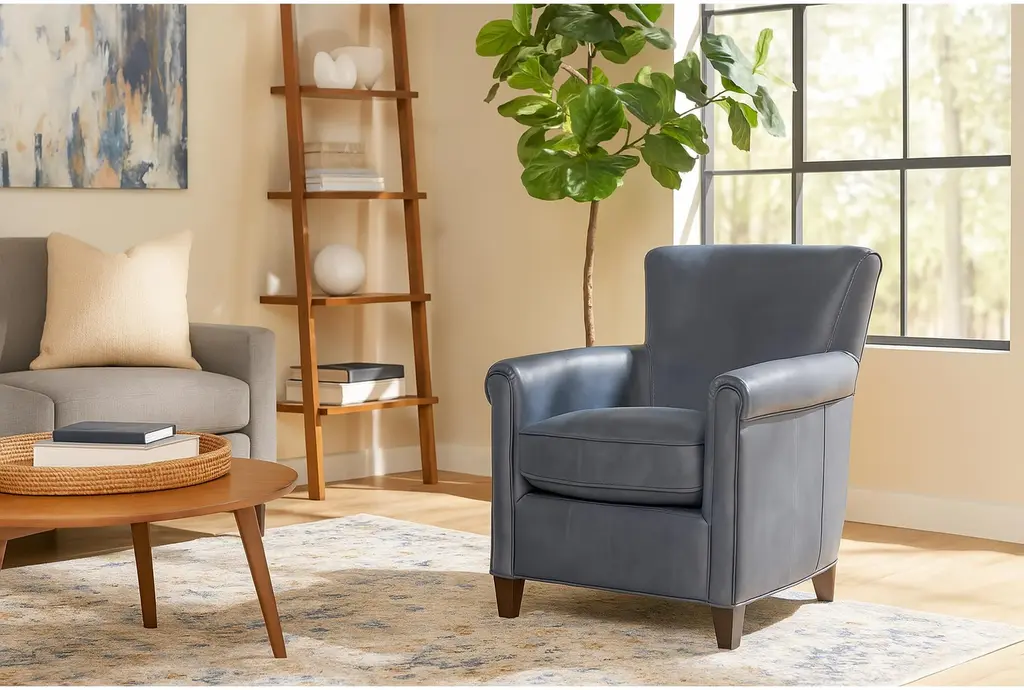 Theodore Blue Leather Arm Chair | 100% Leather | Club | Lounge