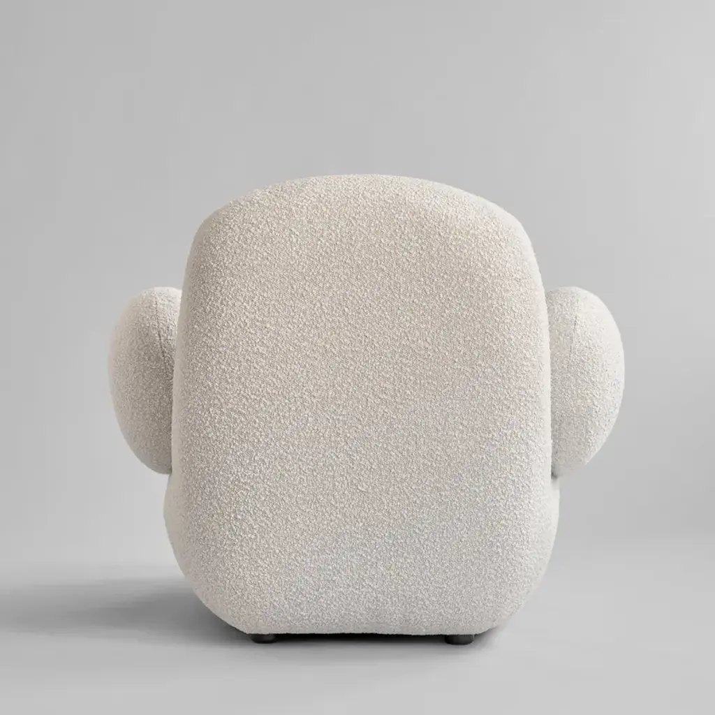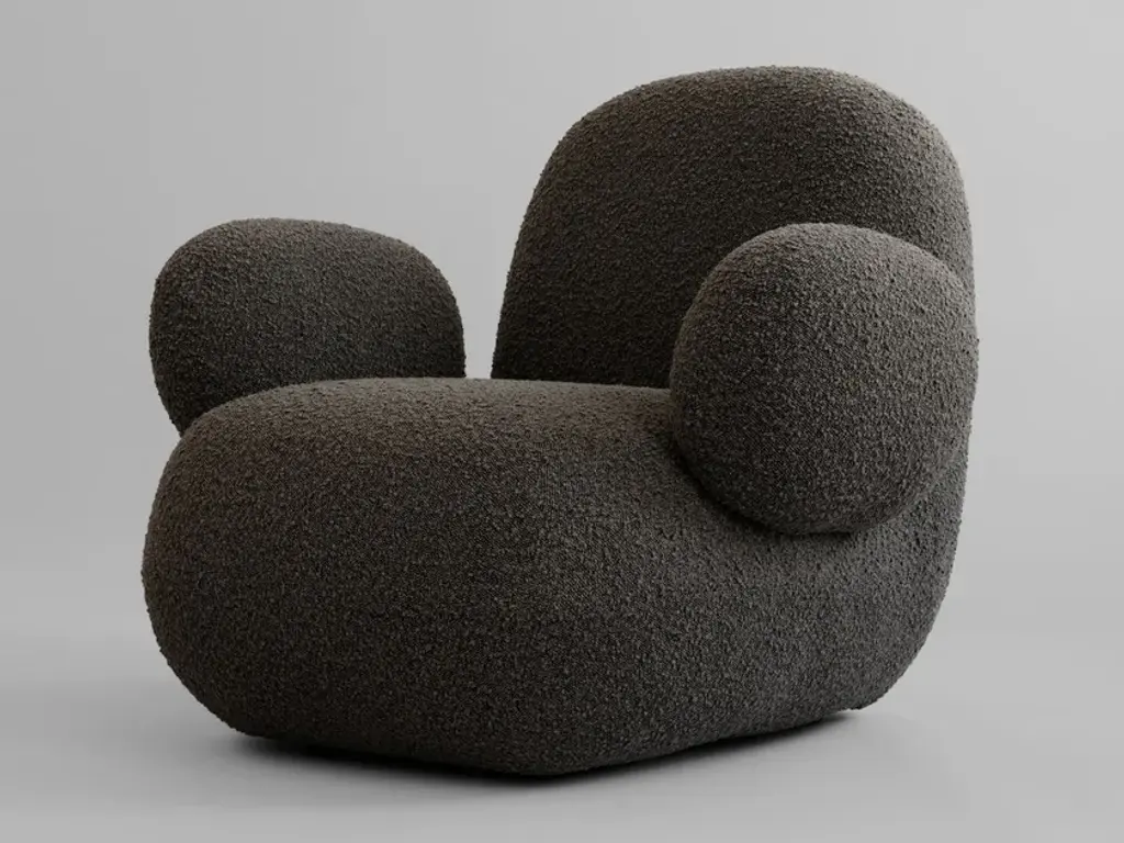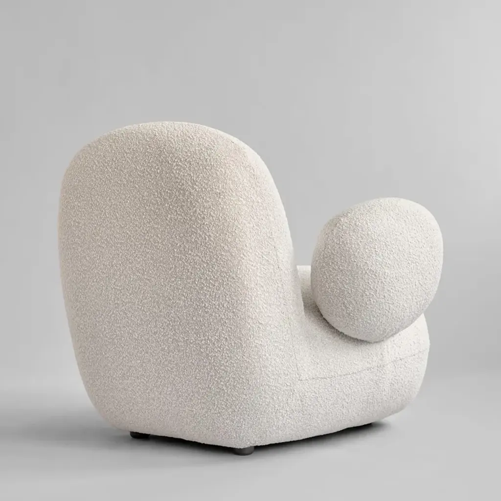 Toe Armchair is a modern lounge armchair in bouclé fabric.
