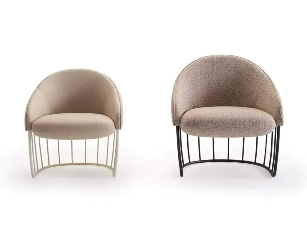 With slightly larger dimensions than the original small armchair, Tonella grows in height and width, while preserving the essence of the first design conceived by the Swedish studio. Hence its nickname “Maxi”. It offers a wider, comfortably seating. And… it is still as coquettish as the tiniest of the family!Note was inspired by wine barrels for their personal tribute to the Marie Antoinette-style vanity chair, the origin of Sancal’s entrepreneurial project.The thin rods of the base simulate the staves of a barrel. The plain upholstery of the interior cushions is smooth while the outer area is quilted to follow the barrel style lines of the base.In addition to its bronze finish, the structure is available in all the colours of our extra matte lacquer range.Tonella fits into any corner. It is ideal as extra seating for sofas but can also be used in public spaces such as lobbies and waiting areas.With this new addition to the family, we continue to pay homage to our origins. If you would like to know more about this collection, please consult the information available about Tonella armchairs, stools, armchairs and sofas on our website.