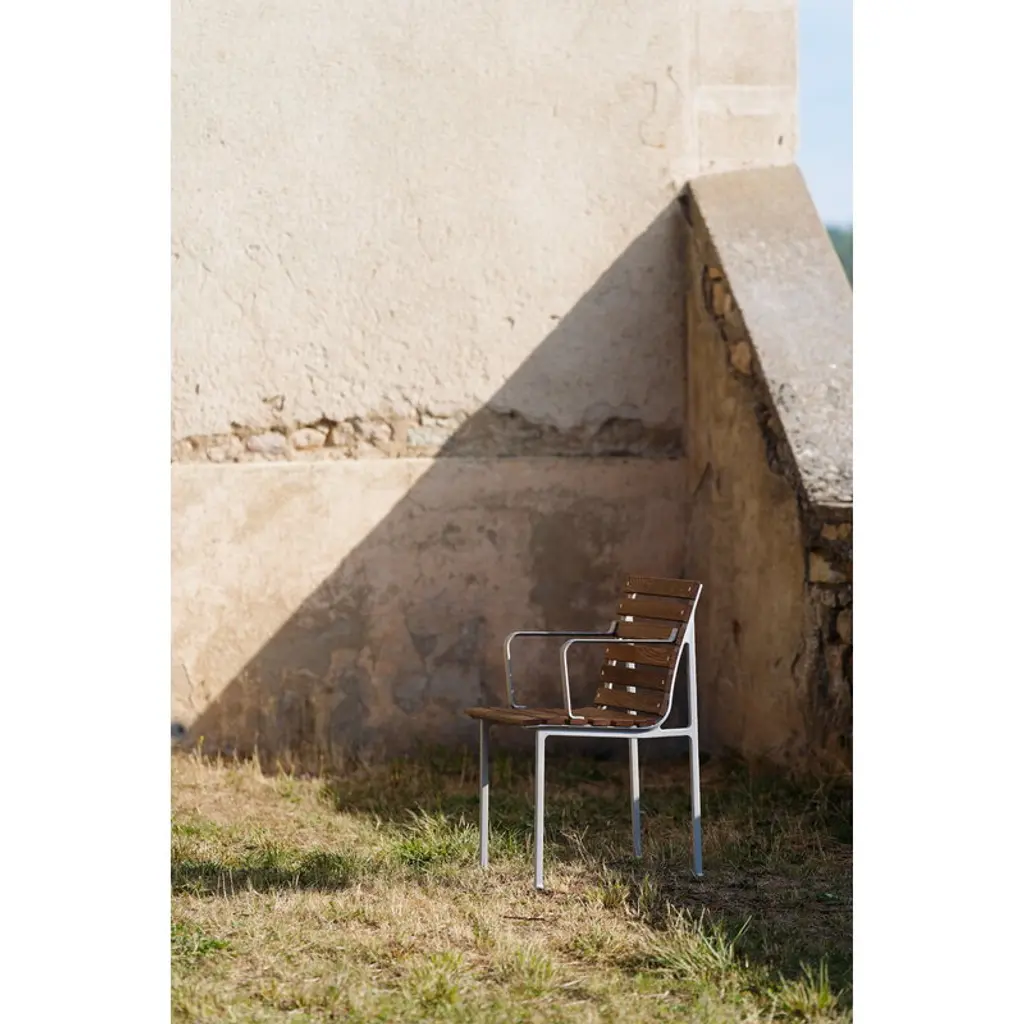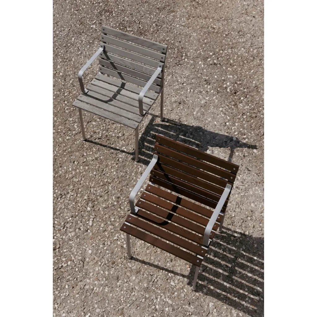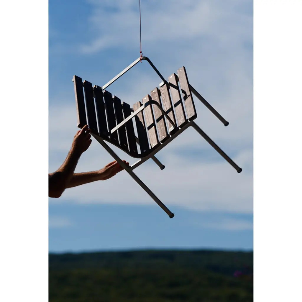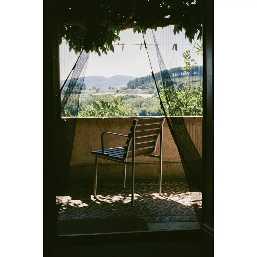 HAY's Traverse armchair brings together soft, flowing shapes and the rich texture of heat-treated ash, making it a natural fit for any outdoor space. Created by French designer Erwan Bouroullec, this outdoor armchair adapts effortlessly to its surroundings, whether nestled in a lush garden or placed on a sleek urban balcony. Over time, the heat-treated ash develops a beautiful silver-gray patina, blending even more seamlessly into its surroundings. For added comfort, you can pair the Traverse chair with a separately sold seat cushion. HAY's Traverse patio furniture is crafted from two strong, weather-resistant materials: a lightweight lacquered aluminum frame and solid heat-treated ash. This chemical-free treatment, achieved with steam and heat, enhances the wood's moisture resistance and strengthens it all the way to the core. The process gives the naturally light ash a dark surface, which gradually ages into a soft gray hue under exposure to UV light. To minimize packaging size, the furniture is delivered in parts.