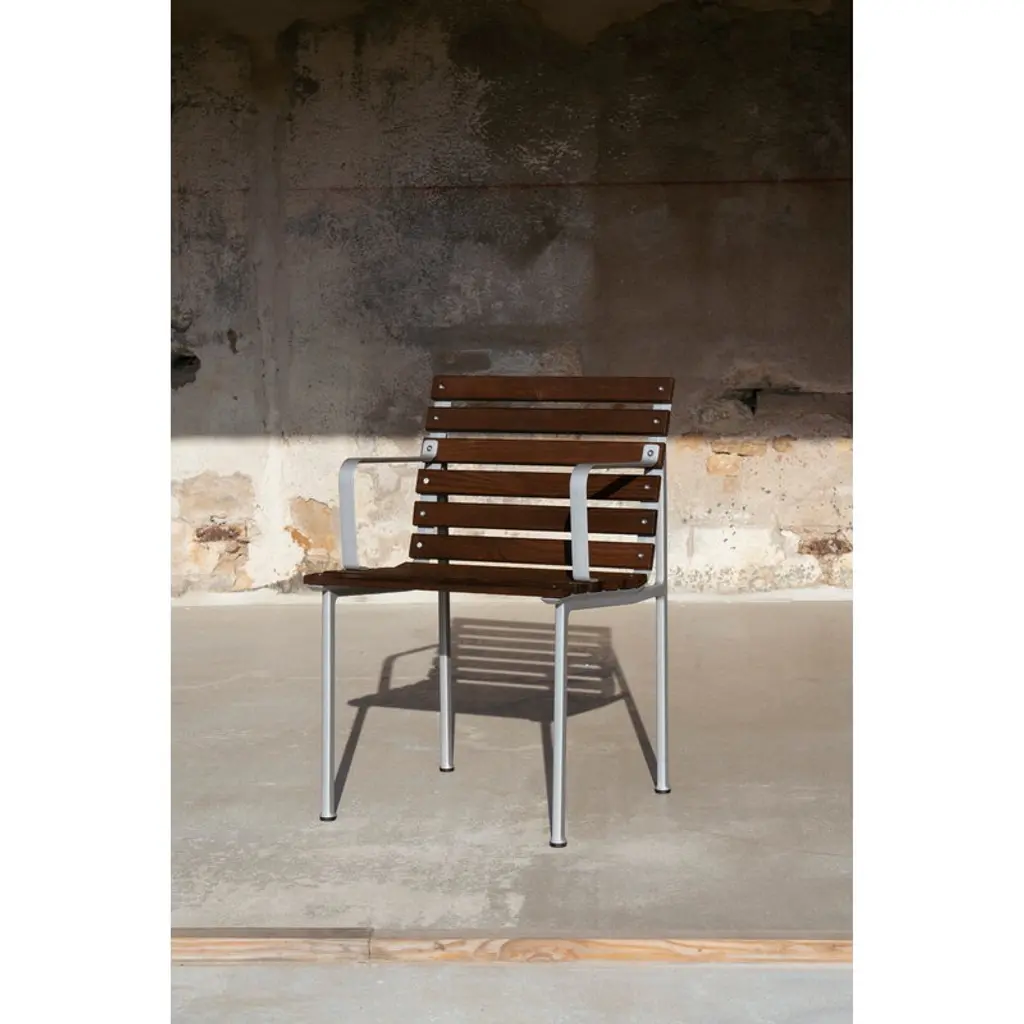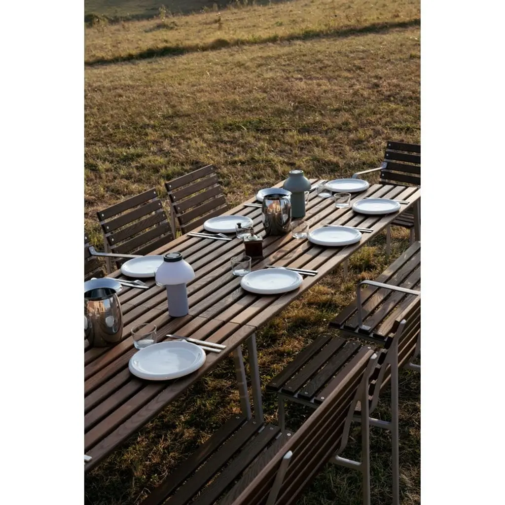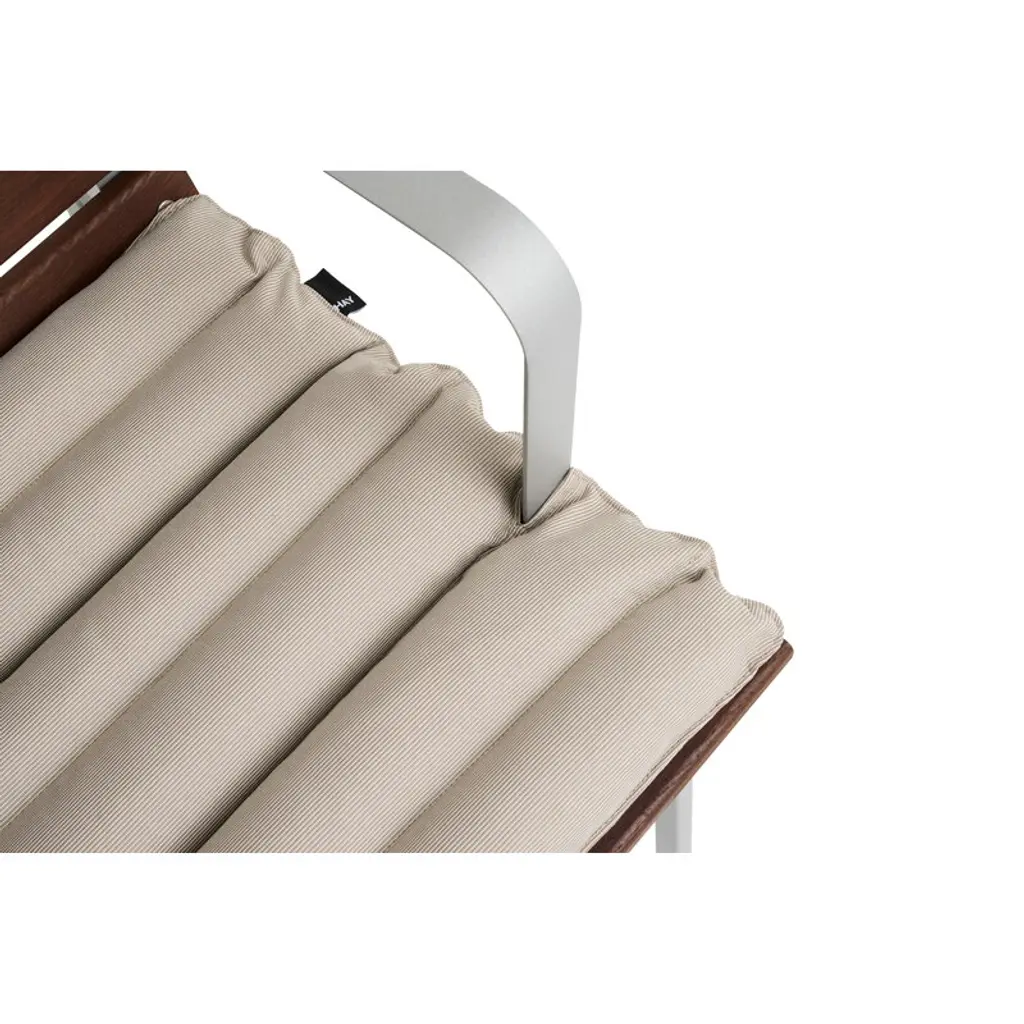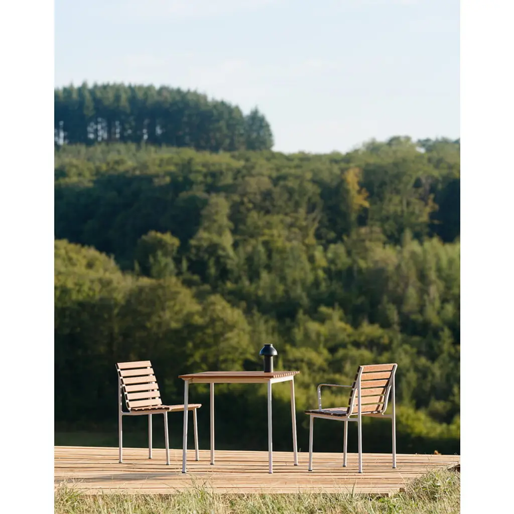 HAY's Traverse armchair brings together soft, flowing shapes and the rich texture of heat-treated ash, making it a natural fit for any outdoor space. Created by French designer Erwan Bouroullec, this outdoor armchair adapts effortlessly to its surroundings, whether nestled in a lush garden or placed on a sleek urban balcony. Over time, the heat-treated ash develops a beautiful silver-gray patina, blending even more seamlessly into its surroundings. For added comfort, you can pair the Traverse chair with a separately sold seat cushion. HAY's Traverse patio furniture is crafted from two strong, weather-resistant materials: a lightweight lacquered aluminum frame and solid heat-treated ash. This chemical-free treatment, achieved with steam and heat, enhances the wood's moisture resistance and strengthens it all the way to the core. The process gives the naturally light ash a dark surface, which gradually ages into a soft gray hue under exposure to UV light. To minimize packaging size, the furniture is delivered in parts.