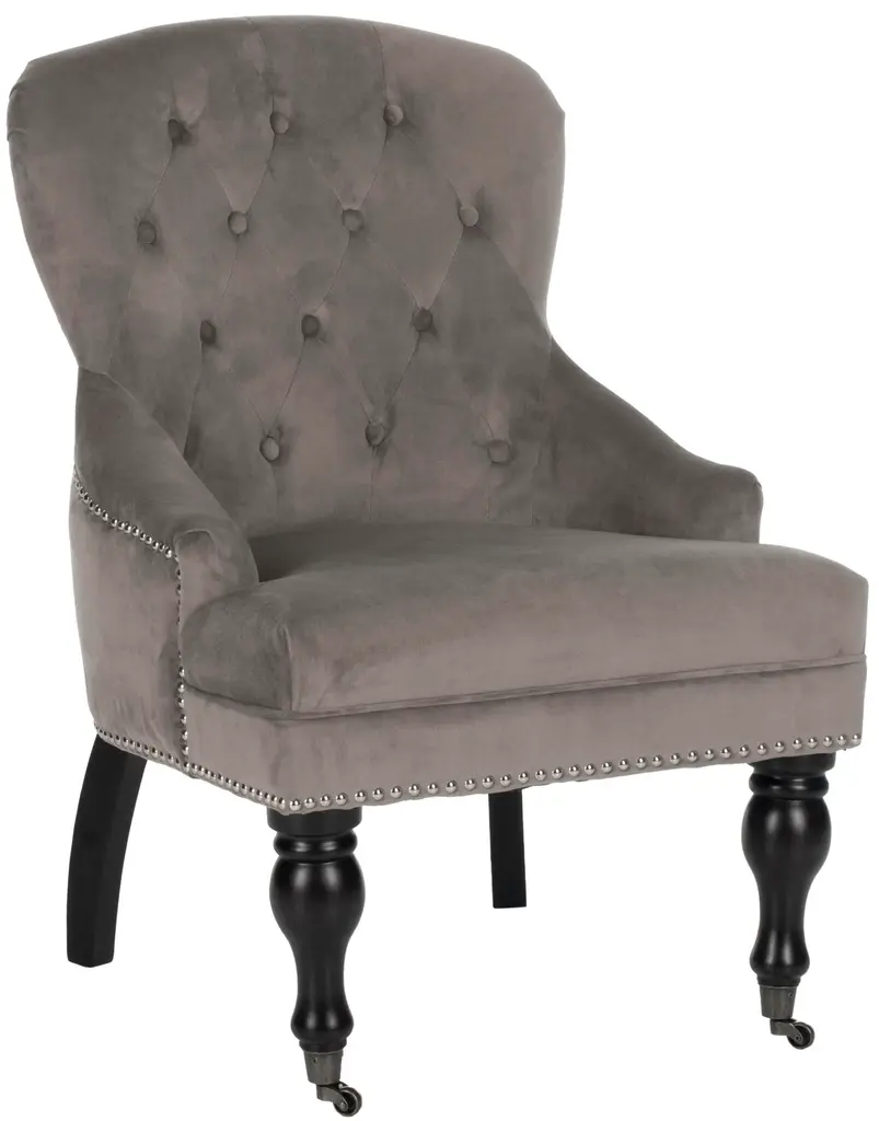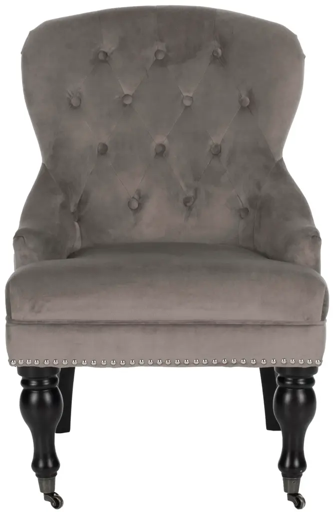 Tufted Armchair & Silver Nailheads In Mushroom Taupe & Java