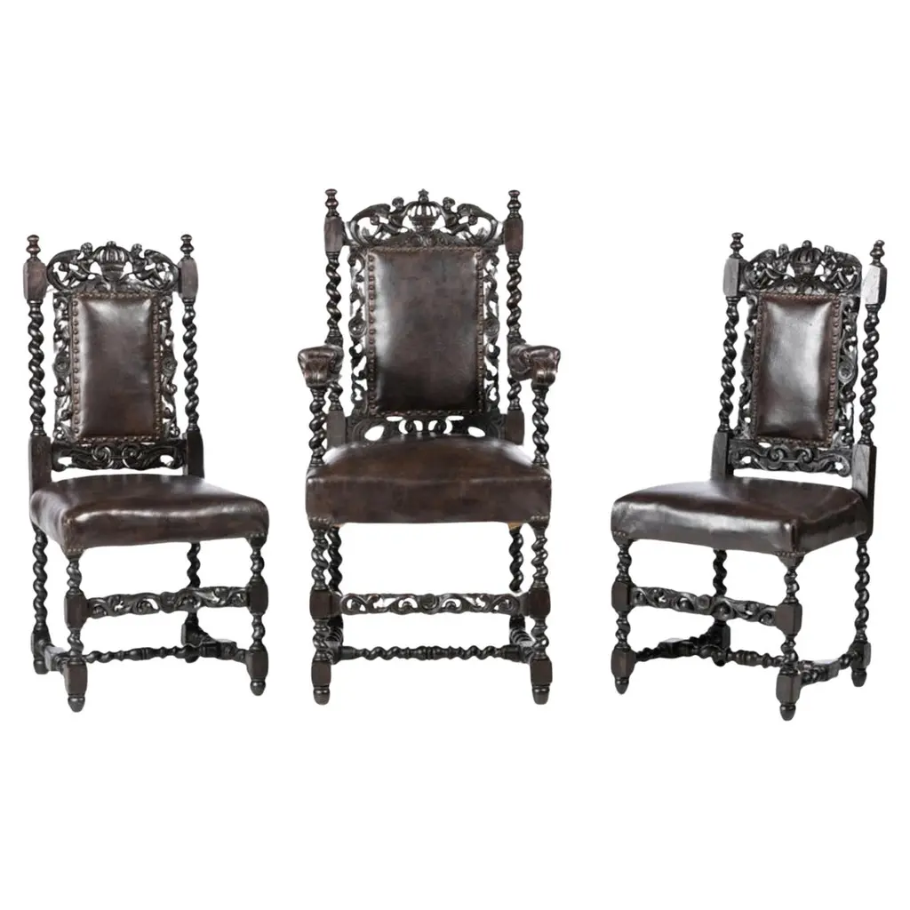 Two Louis Xiii Style Oak Armchairs, Circa 1900