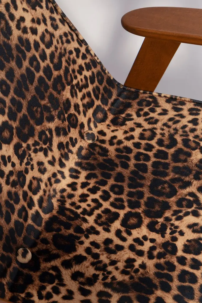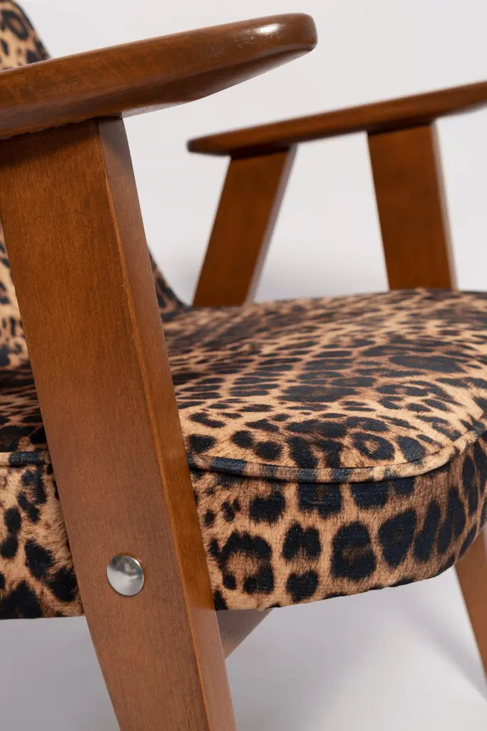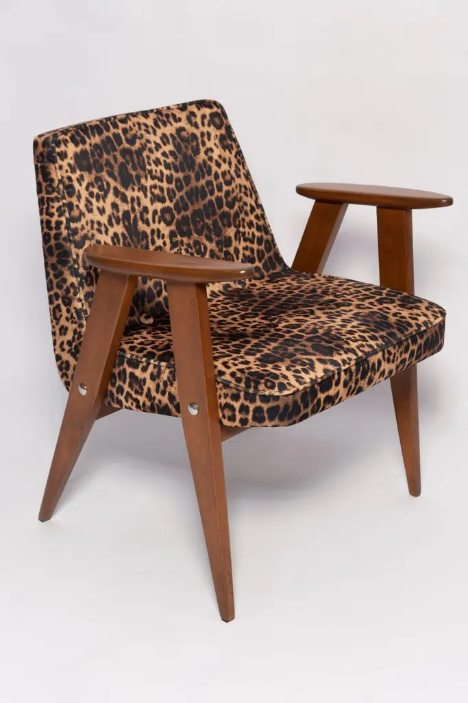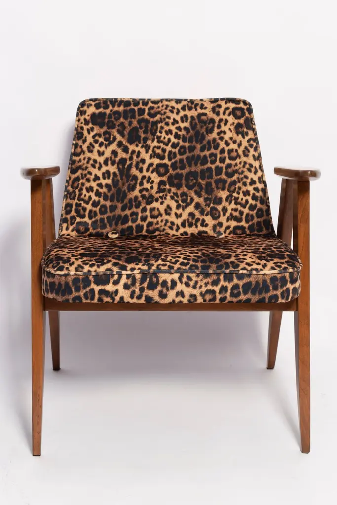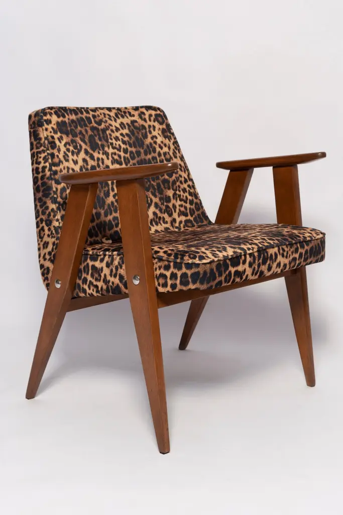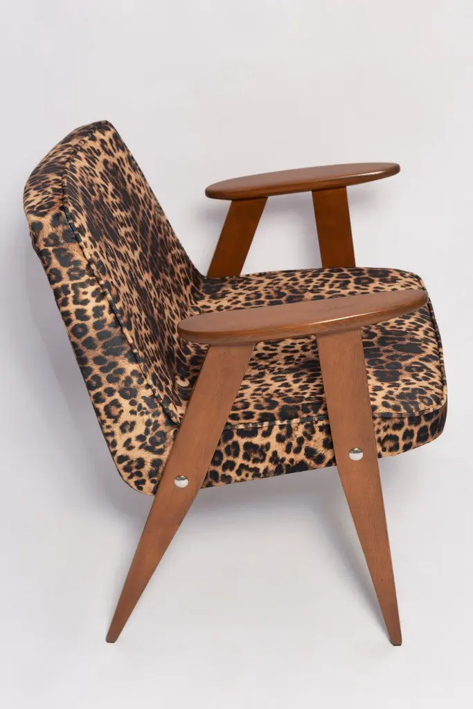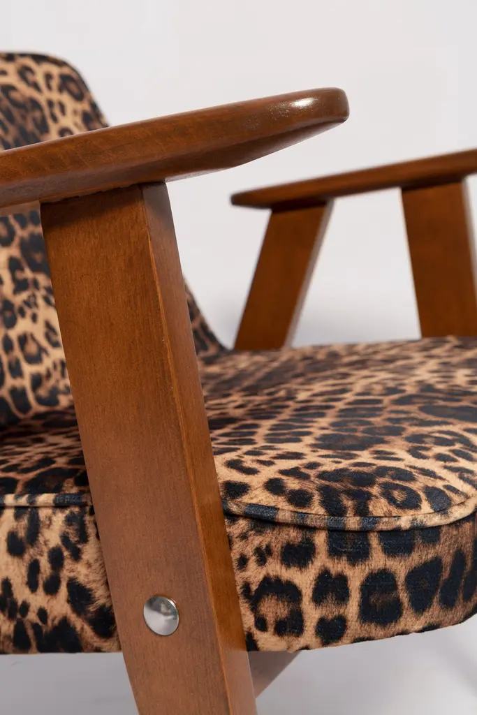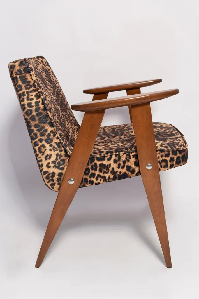 Two Mid Century 366 Armchairs In Leopard Print Velvet, Jozef Chierowski, 1960s