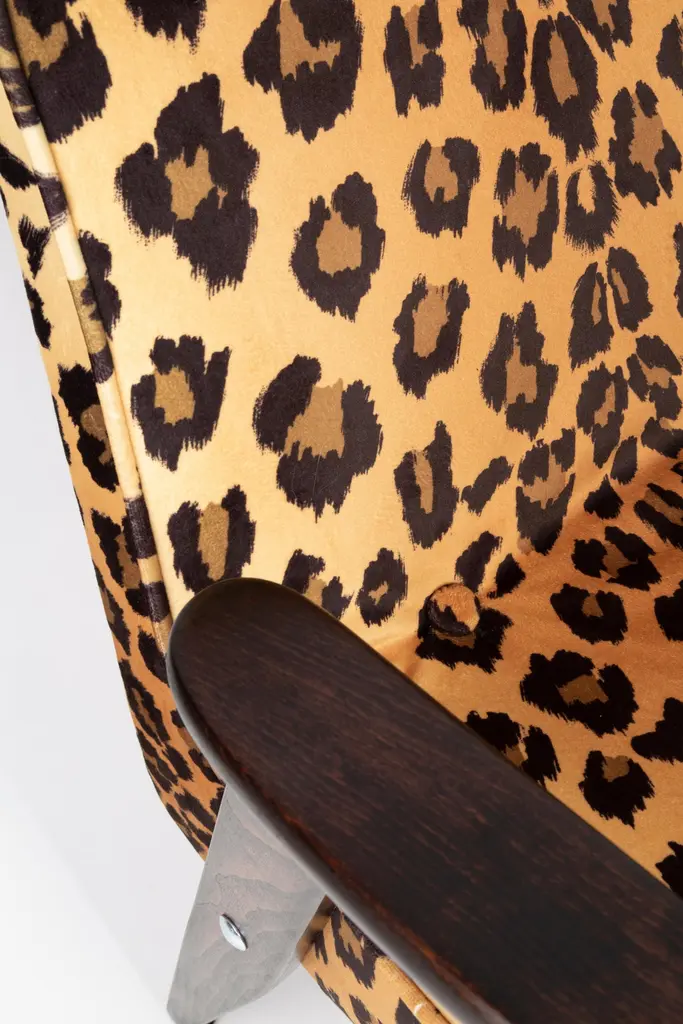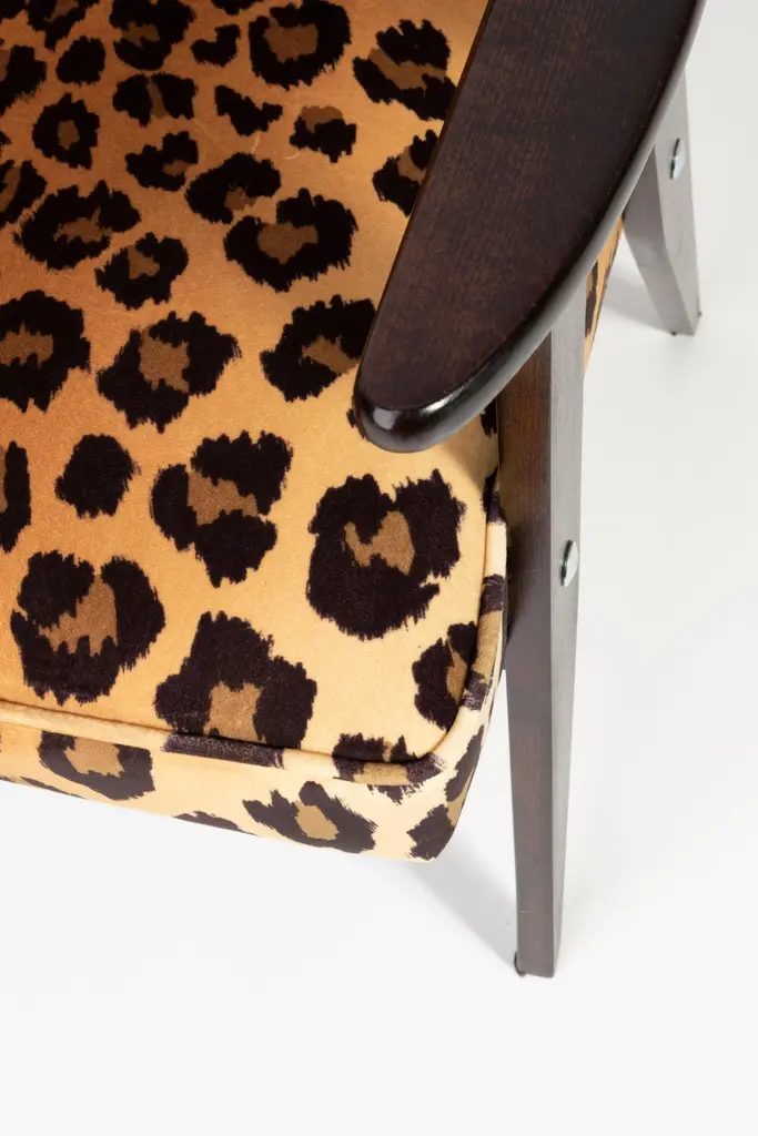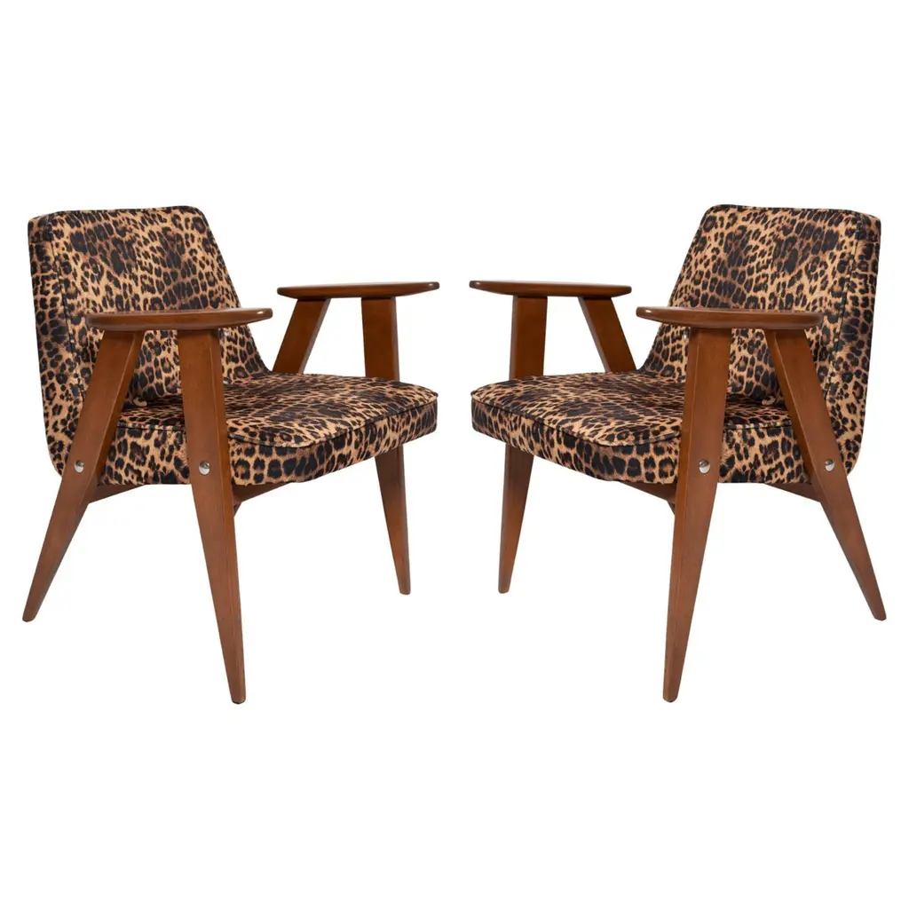 Two Midcentury 366 Armchairs In Leopard Print Velvet, Jozef Chierowski, 1960s