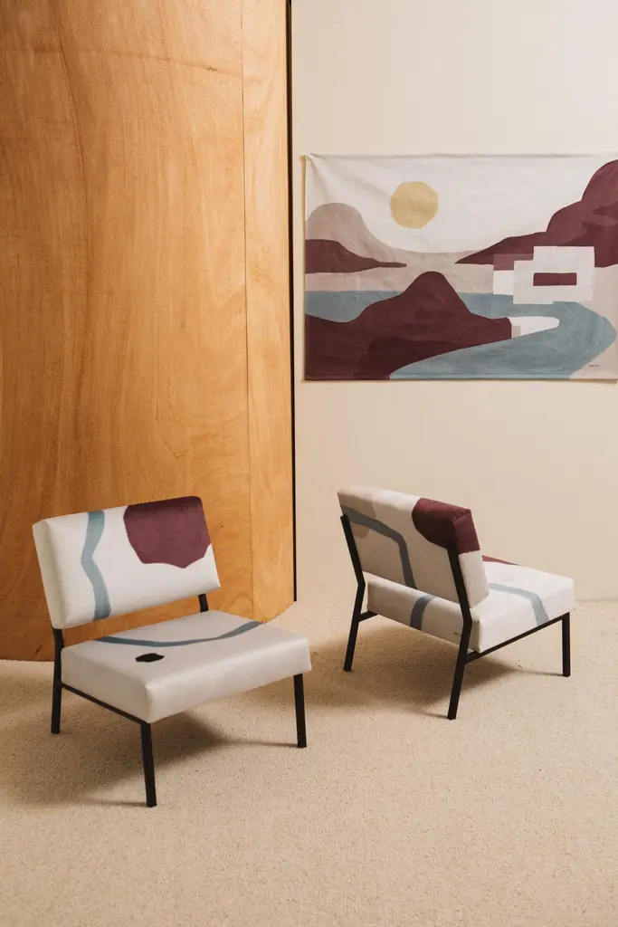 Ulysse left O2 armchair by Babel BruneDimensions: D 63 x W 54 x H 67 cm, Seat H 35 cm.Material: Suede velvet 380g / m², steel.The armchair 02 Ulysse is available in two models (Ulysse left and Ulysse right). Alone, each brings beautiful aesthetics, quality velvet and comfort to your interior. Together they complete the artwork. The design flows from one to the next.With its low seat, the 02 armchair is compact, simple and elegant, the velvet suede highlighting its watercolor-style patterns.Combine the 02 Ulysse Left armchair with the 02 Ulysse Right armchair or even with the Ulysse wall hanging, to complete the look.The Armchair 02 brings together the expertise of several trades, all located around Lille, France. The textile artworks and patterns are all exclusive to Babel Brune, imagined and developed in-house, with the invaluable help of our partner textile designers.Babel Brune was created by Clémence Barker Canler. For the past ten years, she has traveled across Asia to develop new products and source decor and furniture for the European market. From the cabinetmaking workshops in Rajasthan or the Bali's textile workshops, she explores the materials and craftsmanship for which she is a passionate. Returning to Europe, she opens her eyes to what she had not learned to appreciate before these experiences. She relearns to observe, to be inspired, and becomes a real sponge to all this aesthetics that makes her vibrate.Until that creativity becomes too pressing not to be addressed. She had to find a way to welcome this creative bubbling and respond to its deep convictions. She dreams of new modes of consumption, alternatives to the classic circuits for selling furniture in Europe based on imports. This is how Babel Brune was born. By creating objects of character, combining craftsmanship and artistic inspiration, it relies on its operational expertise to express its creativity in an assertive and uninhibited way and participate in the creation of new modes of consumption.At Babel Brune we have a particular knowledge, that of adapting to the expertise, know-how and artistic sensibilities that surround us on each project. Each trade having its respective constraints, we are building a common language capable of transcending them to, together, create beauty. In this sense, Babel Brune echoes the Myth of the Tower of Babel.
