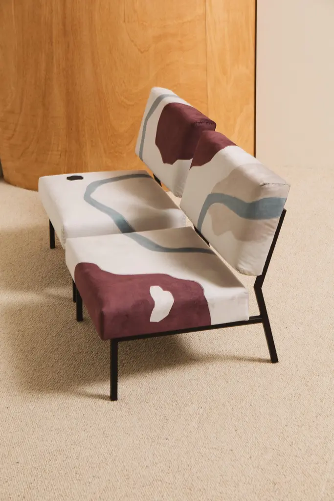 Ulysse Right O2 armchair by Babel BruneDimensions: D 63 x W 54 x H 67 cm, Seat H 35 cm.Material: Suede velvet 380g / m², steel.The Armchair 02 Ulysse is available in two models (Ulysse left and Ulysse right). Alone, each brings beautiful aesthetics, quality velvet and comfort to your interior. Together they complete the artwork. The design flows from one to the next.With its low seat, the 02 armchair is compact, simple and elegant, the velvet suede highlighting its watercolor-style patterns.Combine the 02 Ulysse Right armchair with the 02 Ulysse left armchair or even with the Ulysse wall hanging, to complete the look.The Armchair 02 brings together the expertise of several trades, all located around Lille, France. The textile artworks and patterns are all exclusive to Babel Brune, imagined and developed in-house, with the invaluable help of our partner textile designers.Babel Brune was created by Clémence Barker Canler. For the past ten years, she has traveled across Asia to develop new products and source decor and furniture for the European market. From the cabinetmaking workshops in Rajasthan or the Bali's textile workshops, she explores the materials and craftsmanship for which she is a passionate. Returning to Europe, she opens her eyes to what she had not learned to appreciate before these experiences. She relearns to observe, to be inspired, and becomes a real sponge to all this aesthetics that makes her vibrate.Until that creativity becomes too pressing not to be addressed. She had to find a way to welcome this creative bubbling and respond to its deep convictions. She dreams of new modes of consumption, alternatives to the classic circuits for selling furniture in Europe based on imports. This is how Babel Brune was born. By creating objects of character, combining craftsmanship and artistic inspiration, it relies on its operational expertise to express its creativity in an assertive and uninhibited way and participate in the creation of new modes of consumption.At Babel Brune we have a particular knowledge, that of adapting to the expertise, know-how and artistic sensibilities that surround us on each project. Each trade having its respective constraints, we are building a common language capable of transcending them to, together, create beauty. In this sense, Babel Brune echoes the Myth of the Tower of Babel.