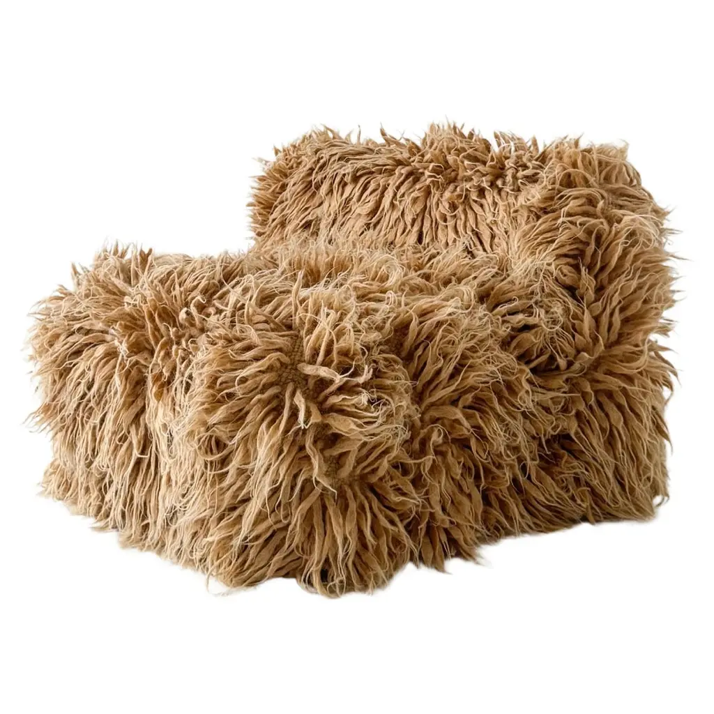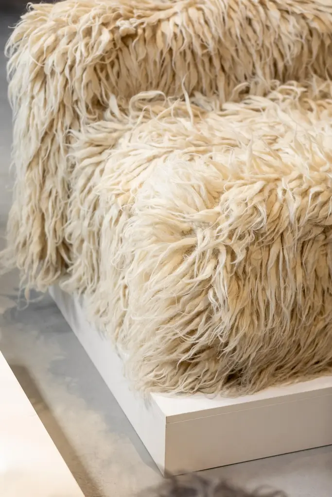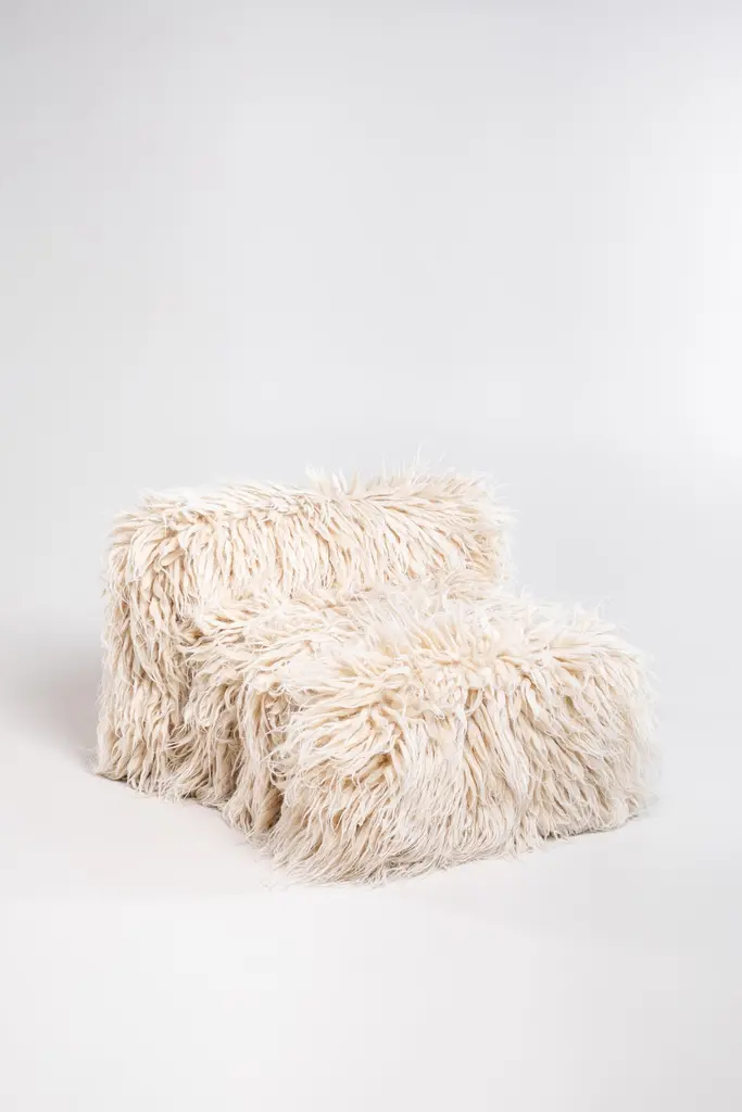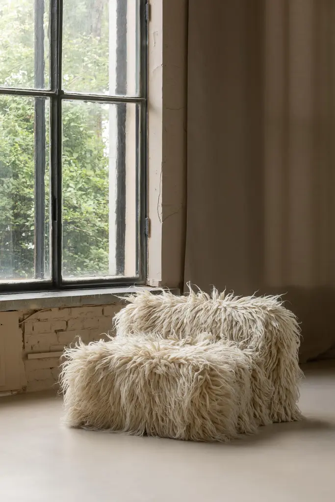Unique Armchair Puffa m4 by KintDesigned by Rostyslav SorokovyDimensions: 1050 W x 850 D x 730 H cmMaterials:Plywood, Foam, Natural Wool, Softness - mediumAvailable in Beige, Gray, Light Gray, Natural Black, Natural White, Warm Gray.The limited series of puffa m4 stranded armchairs is the result of a collaboration between the Ukrainian brands kint x GUSHKA. United by shared values and philosophy, the brands have combined contemporary object design with traditional Ukrainian craftsmanship in these new products.The original and recognizable shapes of the puffa armchair by Rostyslav Sorokovyi have found a new interpretation, revealing the character of the piece through a material traditional to Ukraine - natural wool. Specifically, the eco-friendly Carpathian wool from free-grazing sheep by GUSHKA. The upholstery of the puffa m4 stranded armchair was handcrafted by artisans using the authentic smooth brushed technique, which is performed by brushing the traditional smooth technique.We guarantee the authenticity of each product we create and hope that the limited puffa m4 brushed armchair will become a timeless addition to your interior, one that can be proudly passed on to future generations.