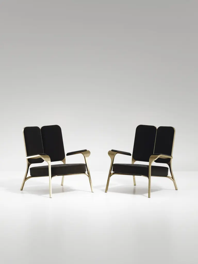 The Paris based label has distinguished themselves since their launch, with their iconic use of shagreen mixed with brass and other exotic materials. All furniture is handcrafted by skilled artisans, ultimately making each piece unique, designed in Paris and produced in the Philippines.The Gingko armchair by R & Y Augousti is an elegant and whimsical piece. The black velvet upholstered piece provides comfort while exuding a playful aesthetic in its abstract nod to a butterfly with the form of its backrest and intricate engraving details. Custom finishing/sizing available on requestThe dimensions of this piece are :Armchair- 76 cm x 73 cm x 36.5 cm (seat height) / 80 cm (backrest height)All R & Y Augousti pieces are handmade by artisans, ultimately making each piece unique.Wipe clean with soft dry cloth.Acclaimed design duo Ria & Yiouri Augousti have established themselves since the 1990s as pioneers of modern-vintage style through their luxurious Art Deco inspired collections.The Paris based label has distinguished themselves since their launch, with their iconic use of shagreen mixed with brass and other exotic materials. All furniture is handcrafted by skilled artisans, ultimately making each piece unique. All shagreen-covered items should be kept out of direct sunlight, color variants may occur on the stingray and other exotic finishes, but this showcases the Parisian label's commitment to creating authentic luxurious products using natural components.