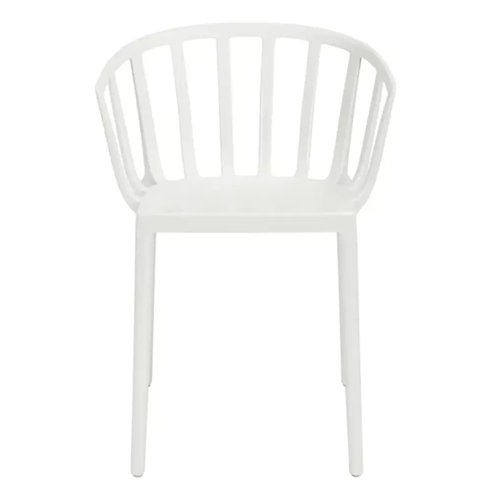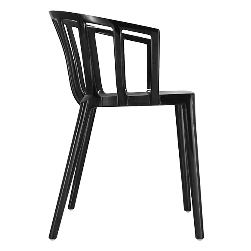 The Venice Armchair by Kartell is a tribute to the city of Venice, bringing classic lines and comfort to a range of spaces. Created by French industrial architect and designer, Philippe Starck, this elegant armchair was inspired by a bar in Venice he used to frequent, where he learned that the secret to seating many people at a table was small armchairs lower than all the others. Simple legs support a smooth seat and softly rounded, low back that slopes to provide armrests, creating continuous lines and an inviting silhouette that pairs perfectly with indoor and outdoor seating arrangements.