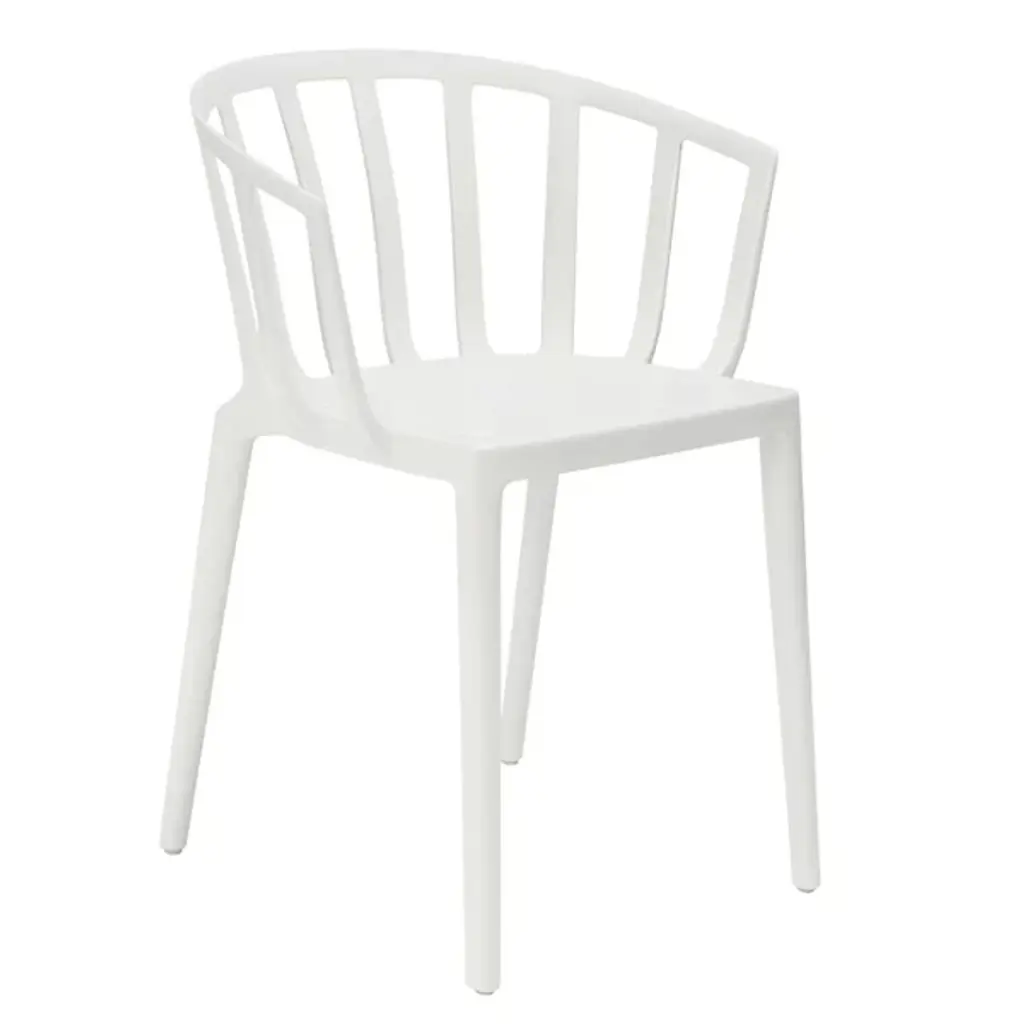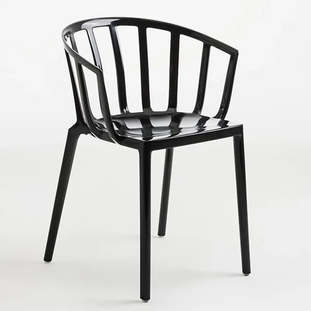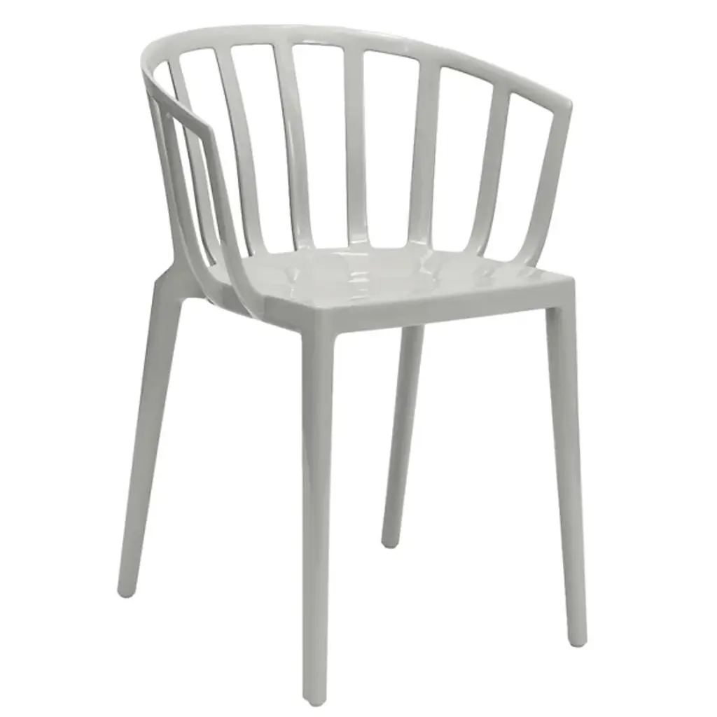 The Venice Armchair by Kartell is a tribute to the city of Venice, bringing classic lines and comfort to a range of spaces. Created by French industrial architect and designer, Philippe Starck, this elegant armchair was inspired by a bar in Venice he used to frequent, where he learned that the secret to seating many people at a table was small armchairs lower than all the others. Simple legs support a smooth seat and softly rounded, low back that slopes to provide armrests, creating continuous lines and an inviting silhouette that pairs perfectly with indoor and outdoor seating arrangements.
