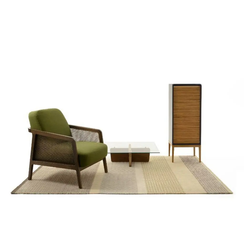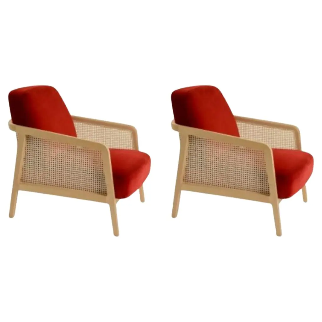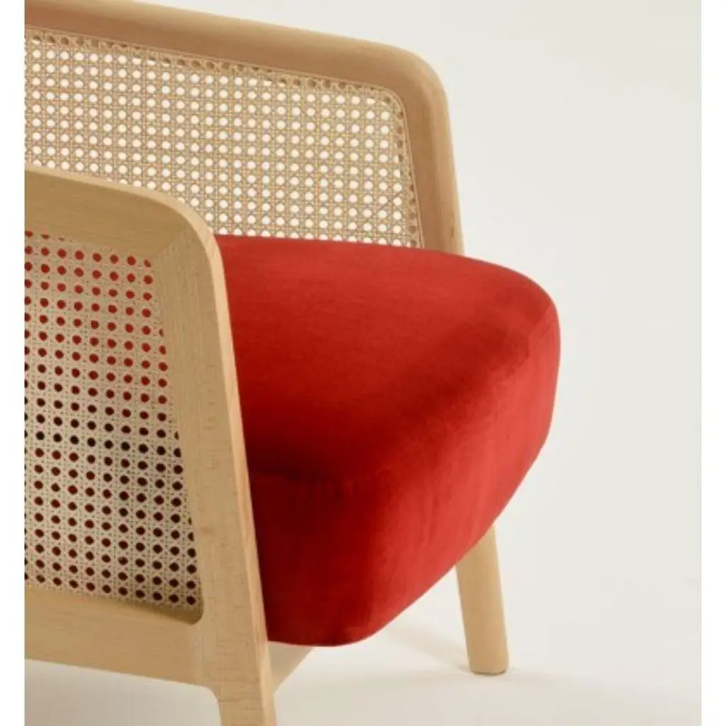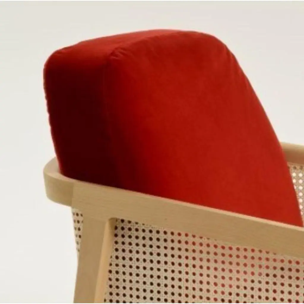 Vienna lounge beech red velvet by Colé Italia with Emmanuel GallinaDimensions: H 78, W 53, D 50 cmMaterials: Lounge armchair in natural beech wood and straw; upholstered seat and back.Possibility to add a soft feather upholstered back cushion. Also available: Vienna chair, Vienna little armchair, & different materials.TC: C.O.M. fabric - send us your own materialCA: Cat A - Angel (polypropylene), Ganesha (synt. leather), Nord Wool (felt)CB: Cat B - Tiffany (polyestere), Lana (aquaclean)CC: Cat C - Velvetforthy (Velvet), Topia (wool), Novum (Wool), Opera (felt)CP: Cat P - Milano (full grain leather) Vienna is an extraordinarily comfortable and elegant collection of chairs and armchairs designed by Emmanuel Gallinawho loves to quote Brancusi when saying that “simplicity is complexity resolved”. Inspired to the 50’s of Marcel Gascoin,but also to Vienna at the end of the 19th century. A tribute to Alfred Sloan’s American pragmatism joined to Europeanstyling and, in this particular case, to the renowned Italian talent constantly aiming to harmonize beauty and functionality.In solid beech and straw, it is a perfect combination between digital machines and handcraft. The structure is in solidbeech. The back is in hand-braided Vienna straw fixed in a milling. The padded seat is available in different fabrics fittedfor contract use. In the variation Vienna Soft, both chair and armchair have totally upholstered seat and back.Colé is a young Italian design brand, with a high-end production 100% made in Italy. Born from the experience of Matteo De Ponti, architect, who grew up in one of the most outstanding Milanese design families, and the artistic sensibility of Laura Macagno, degree in Economics and passionate of art and design. Our Mission is to create design icons, beautiful and comfortable pieces that can Stand the test of time, furnishing houses of international and sophisticated clients, and realized with craftsmanship, thus unique. “We love objects which own deep roots, excellent quality, and a strong evocative power. Archetypal forms dressed with new beauty without losing their classical composure”.Our expressive research is inspired by the utopian force of Italian eminences grises architects and designers of the ’50s, the Scandinavian design, the Bauhaus, ethnic handcraft and houses of famous writers of the XX century, all different as a style but united by the intense soul of those who worked and lived there.