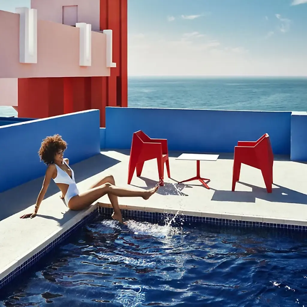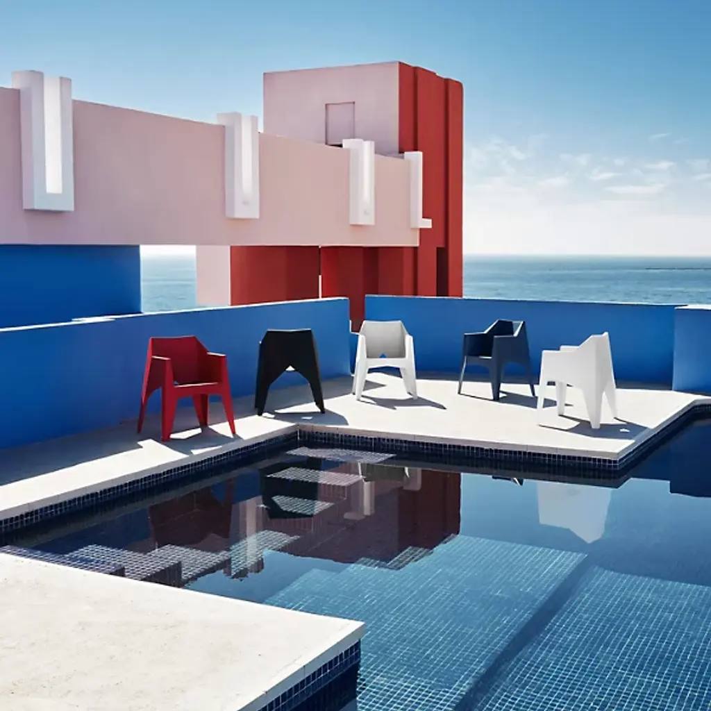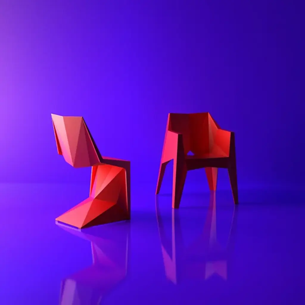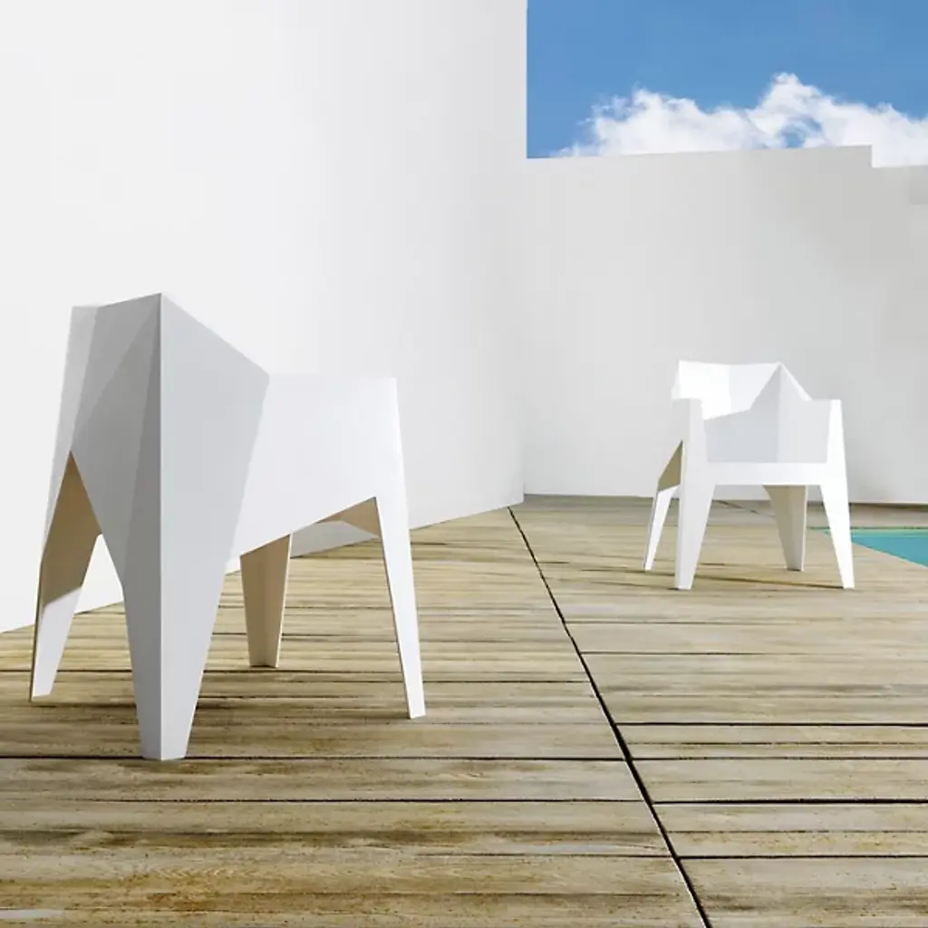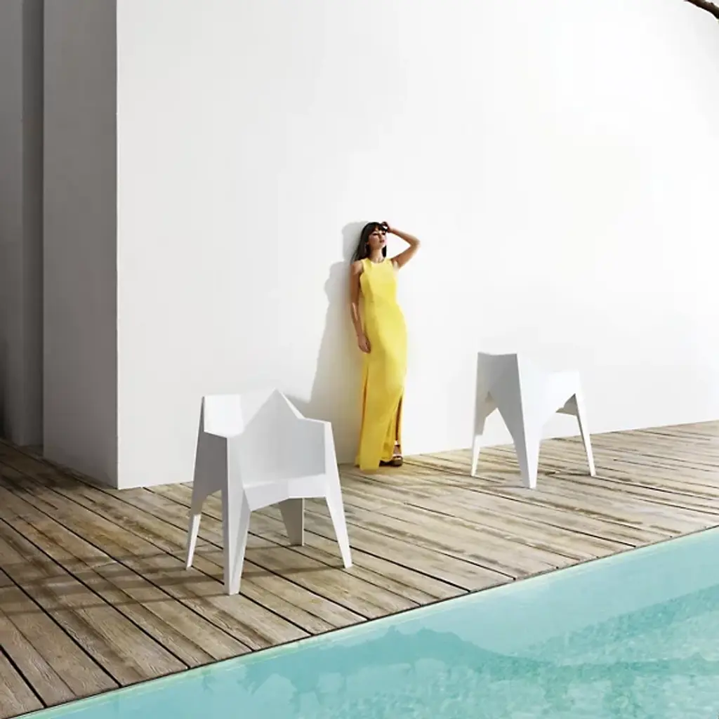 The Voxel Outdoor Stacking Armchair Set of 4by Vondom is a design from Karim with a fun, functional composition. Made from injected polypropylene with fiberglass, this piece has a defined and durable design that works both indoors and out to provide a spot to sit. Strong, structural, and stackable, each chair is faceted in just the right places to provide a comfortable seat and offer spaces a cool, architectural look.