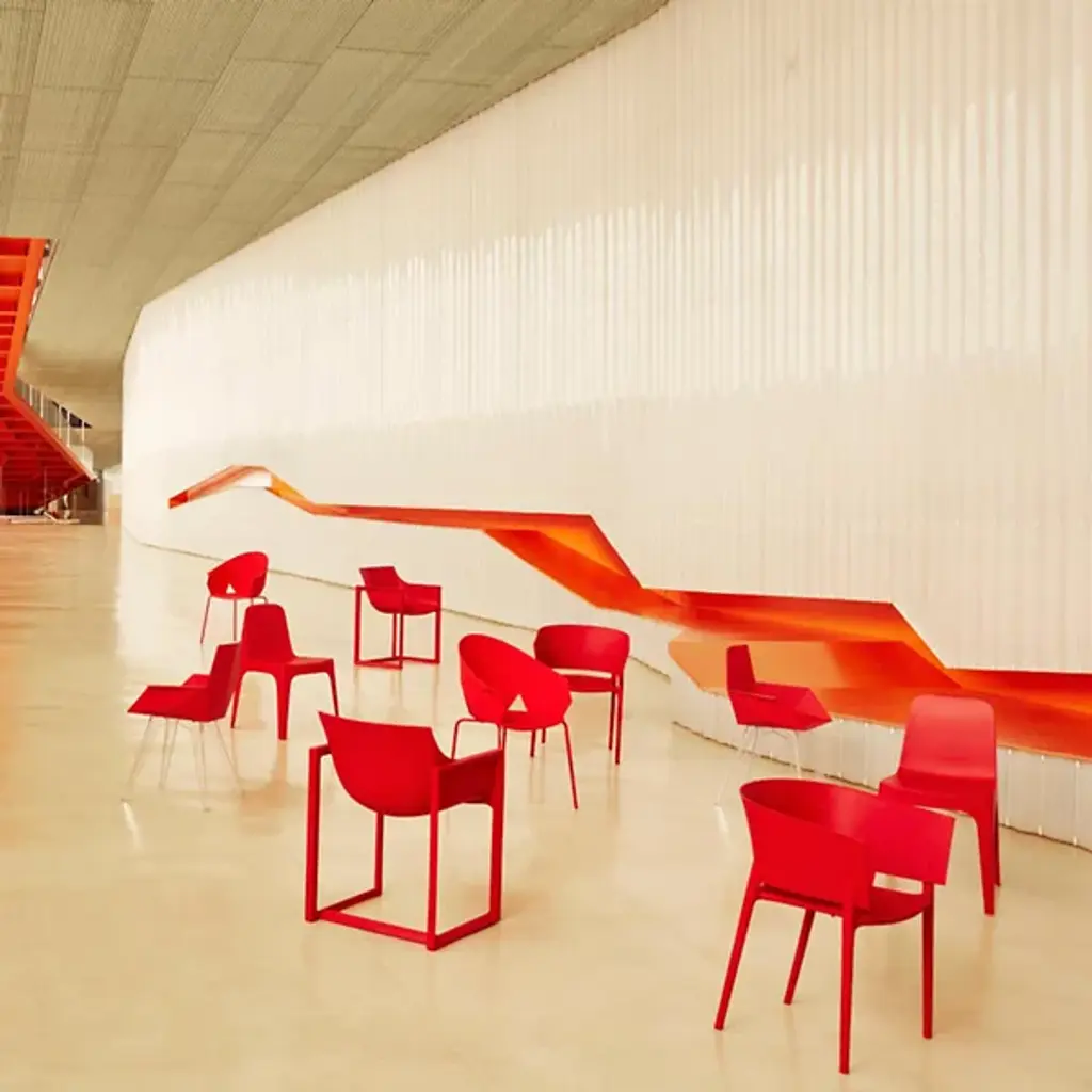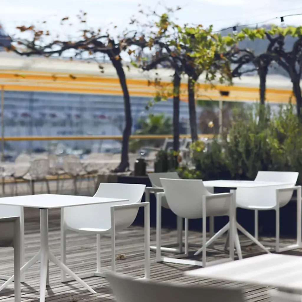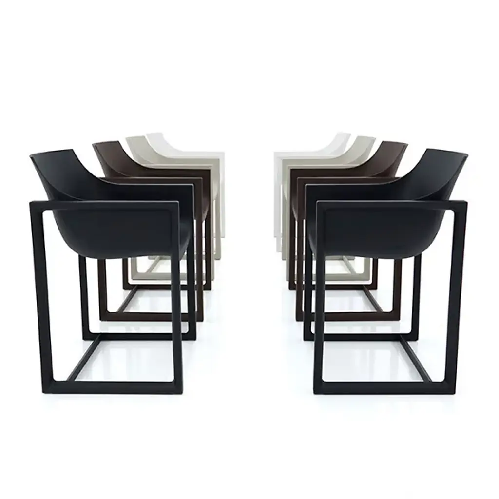 Vondom’s sleek Wall Street Armchair - Set of 2 arrives from Spain, featuring swooping lines that simultaneously call to mind the city and the sea. A deep enclosed seat with a slightly angled back ensures a comfortable repose, while the legs on each side are melded into two rectangular frames. Don’t let the clean lines fool you – a formula of tough fiberglass and injected polypropylene ensures many years of comfortable, stylish service.