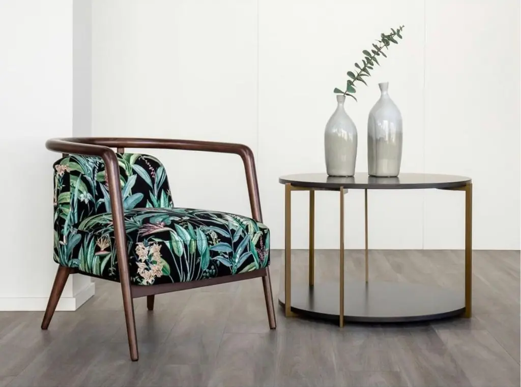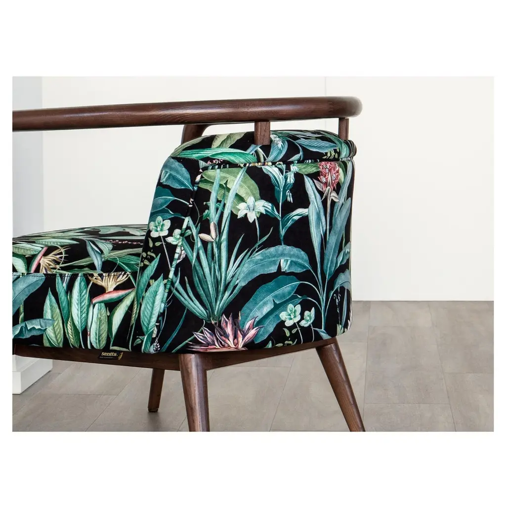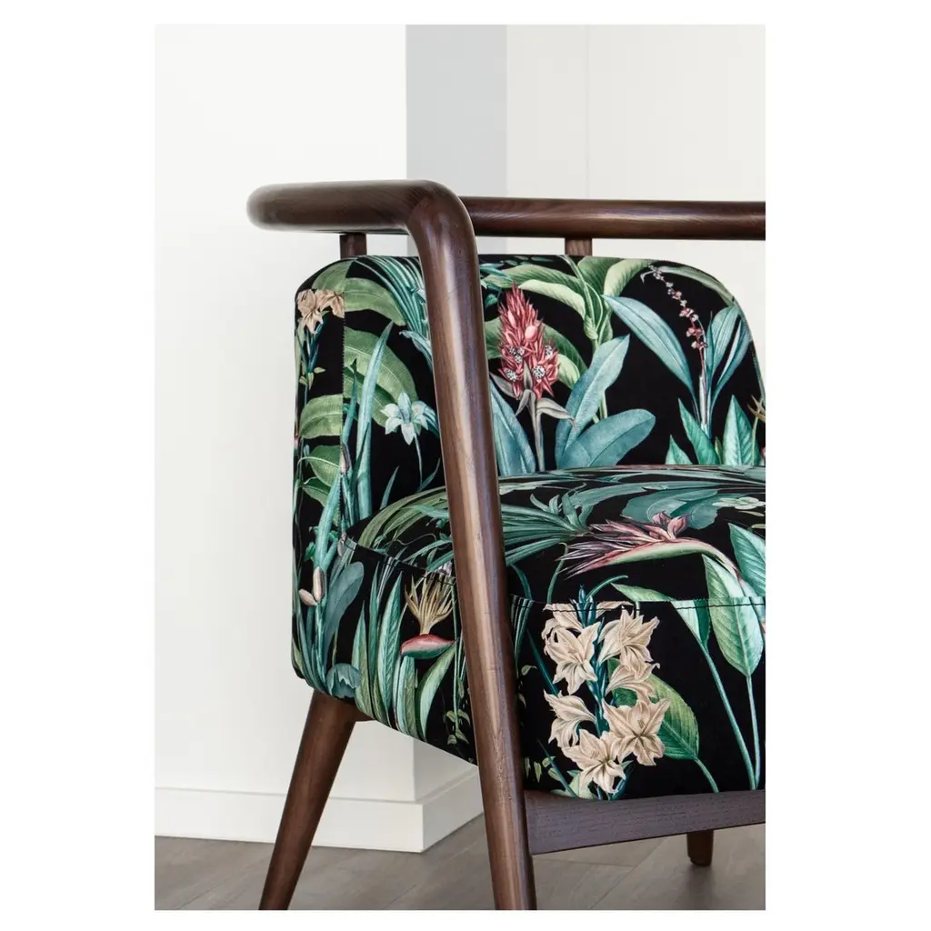 Walnut, Flower Fabric Modern Essex Armchair