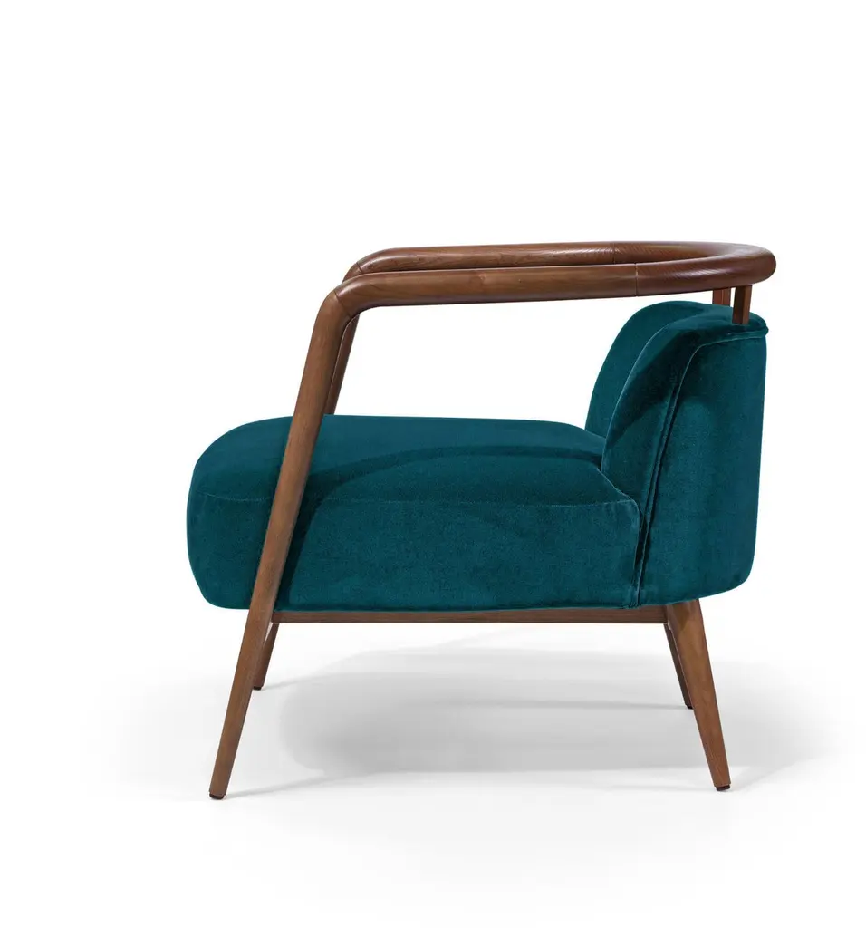 Walnut, Turquoise Velvet Modern Essex Armchair