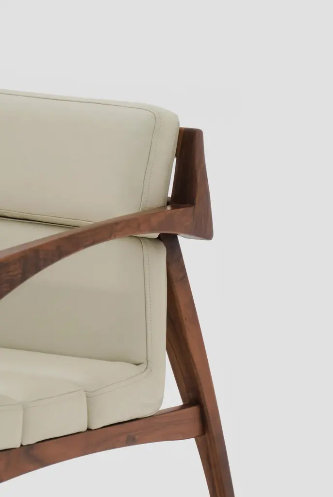 White helmut armchair by Arturo VerásteguiDimensions: D 72 x W 76 x H 70 cmMaterials: walnut wood, leather.Armchair made of solid holm walnut, leather.Arturo Verástegui has been the director and founder of BREUER since 2015. Arturo began his career in the world of furniture at the beginning of the 1990s, until he founded BREUER with a strong industrial and trade vocation.BREUER is a company specializing in the design and manufacture of custom furniture and spaces, which began in 1993 in Mexico City under the direction of Arturo Verástegui.Since the beginning of the nineties Arturo Verástegui, founder of the company, began his career in the world of furniture: beginning with the distribution and manufacture of residential furniture and with more than a decade of experience in commercial furniture, BREUER was born with a strong industrial and trade vocation.That is only one part of our history, the other began almost 100 years ago with the architect and designer Marcel Breuer, from whom our name arises. But it is not only the name that we take from Marcel Breuer, but also his modernist ideals and the desire to implement the latest in manufacturing technology is his designs.