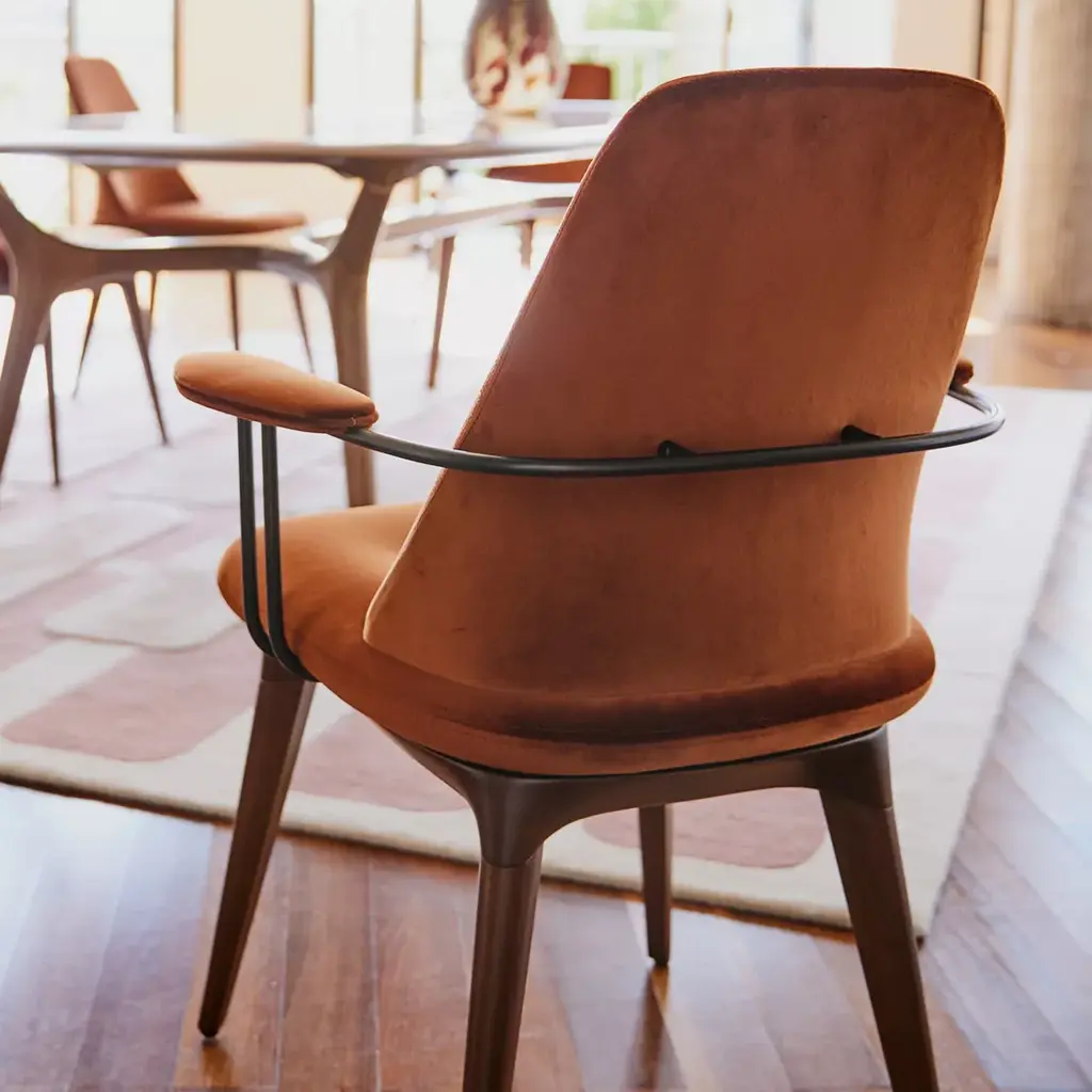 Like a sail inflated by the wind, the back of the Winch chair envelops you in its comfort. Functional and original it swivels: no need to raise it to leave the table. Also available in a fixed version.