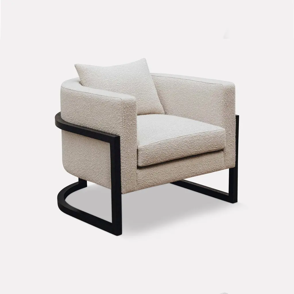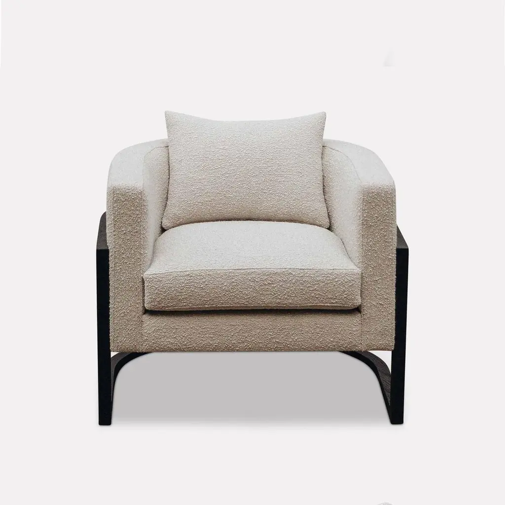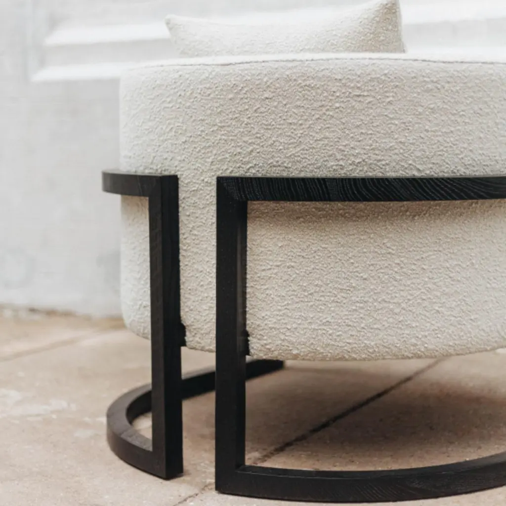 Wood Julius Armchair by DuisttDimensions: W 86 x D 84 x H 70 cmMaterials: Duistt Fabric, Darkened OakNotes: One back cushion includedThe JULIUS wood armchair, crafted with great attention to detail, features clean and modern lines always with a strong craftsmanship presence like the wood that embraces and supports the padding. Constructed with a webbed seat and back and high-density foam.DUISTT is a Portuguese high-end furniture brand.Born in Porto in 2014, the company breathes history and modernity. We blend ancient knowledge and techniques with contemporary aesthetics.DUISTT designs refined and sophisticated pieces aiming to provide major comfort and quality. Handmade pieces crafted with art that are absolutely unique and can last generations.We invite you to discover our elegant and timeless designs and we hope it brings you pleasure.