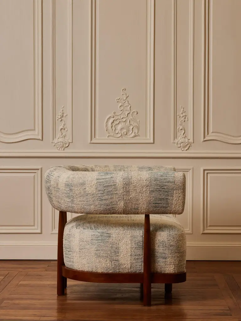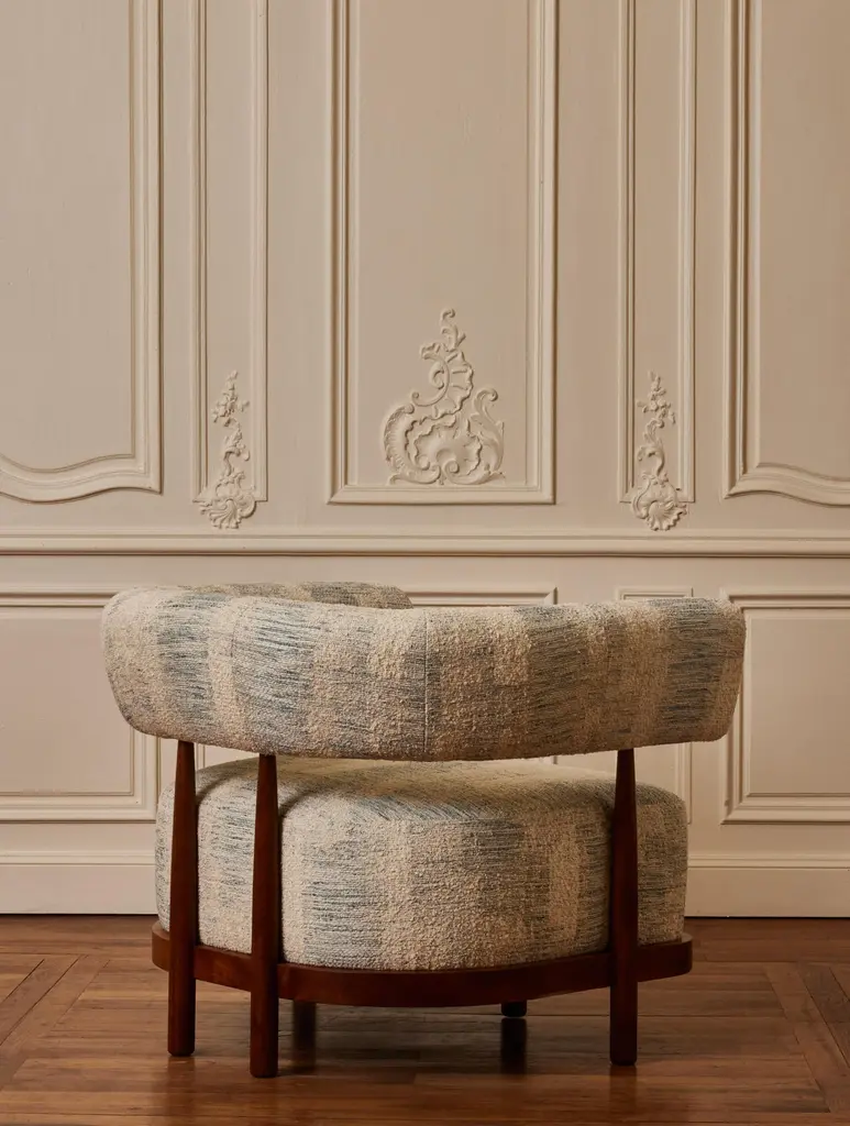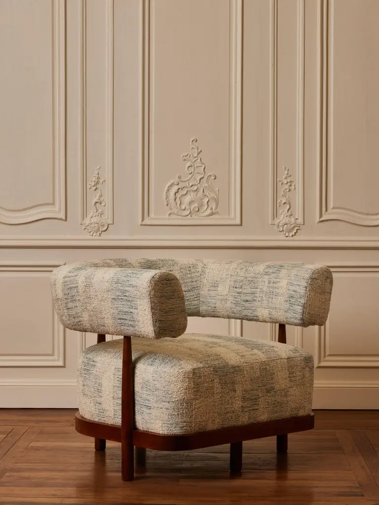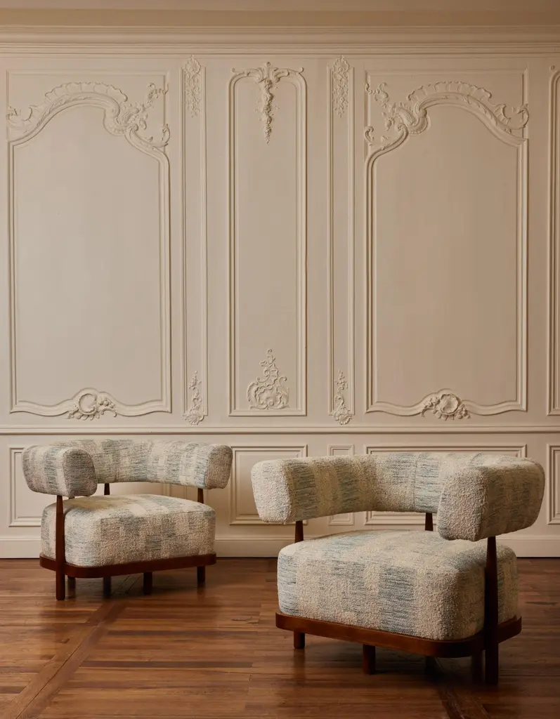 Pair of armchairs in wood upholstered with a fabric by Dédar.Creation by Studio Glustin.France, 2023.