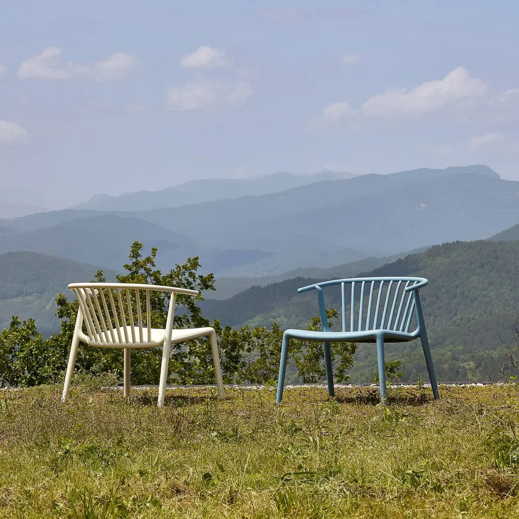 Transform your outdoor space into a luxurious oasis with the Woody Outdoor Lounge Armchair (Set of 2) from Resol. Crafted with a vintage-inspired design, these chairs strike the perfect balance between lightness, functionality, and respect for the environment. Made for both indoor and outdoor use, our chairs feature complex curves and soft shapes that are as durable as they are comfortable. Elevate your lounging experience with the Woody set. Highlights
