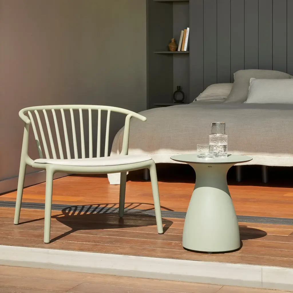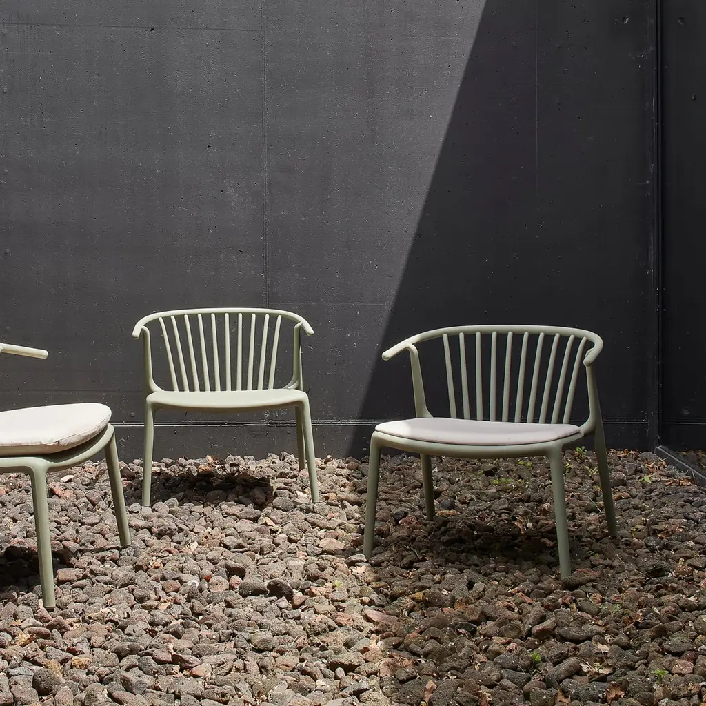 The subtly vintage Woody Outdoor Upholstered Armchair (Set of 2) blends the classic design of wooden slatted furniture with modern features. Its complex curves and natural shapes were inspired by a drop of mercury or a pebble, resulting in a comfortable and fashionable piece. This chair is not only functional and ergonomic, but also durable and environmentally-friendly, making it a premium addition to any indoor or outdoor space. Highlights