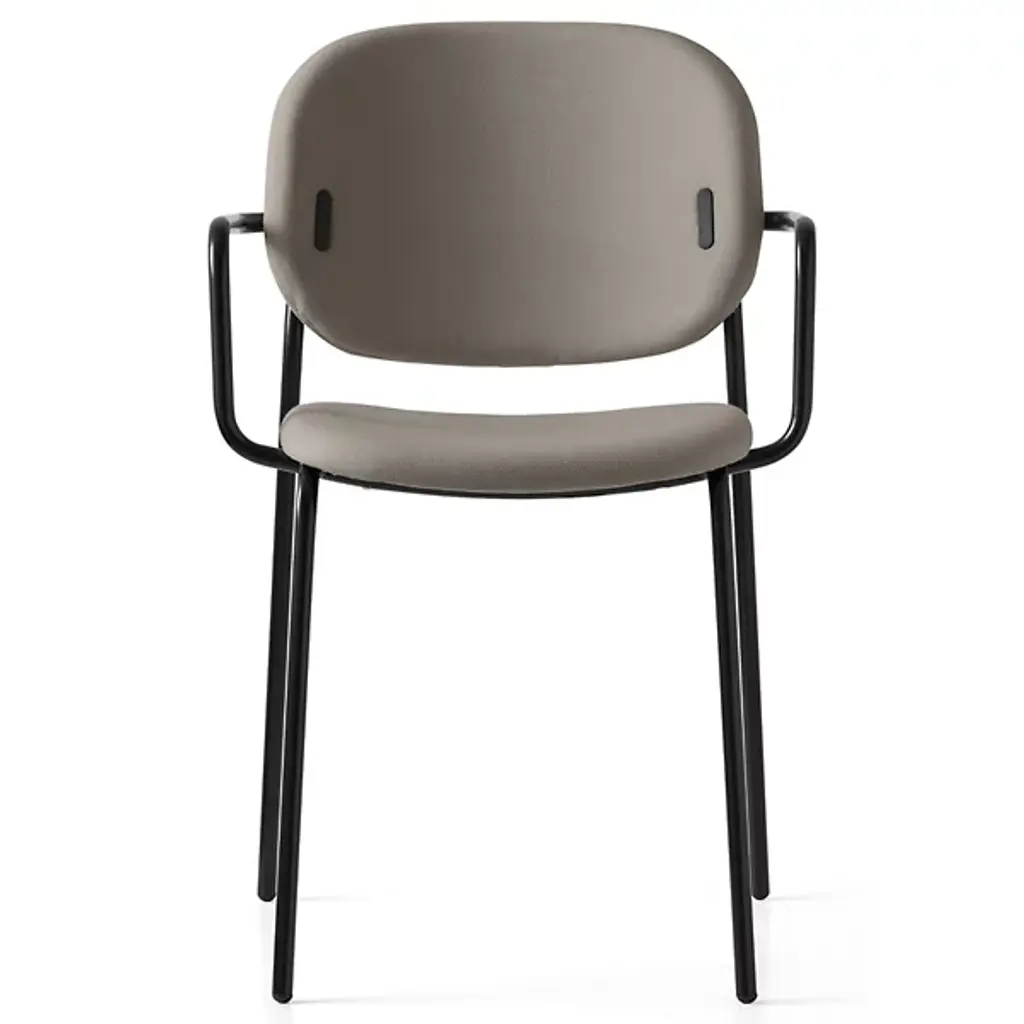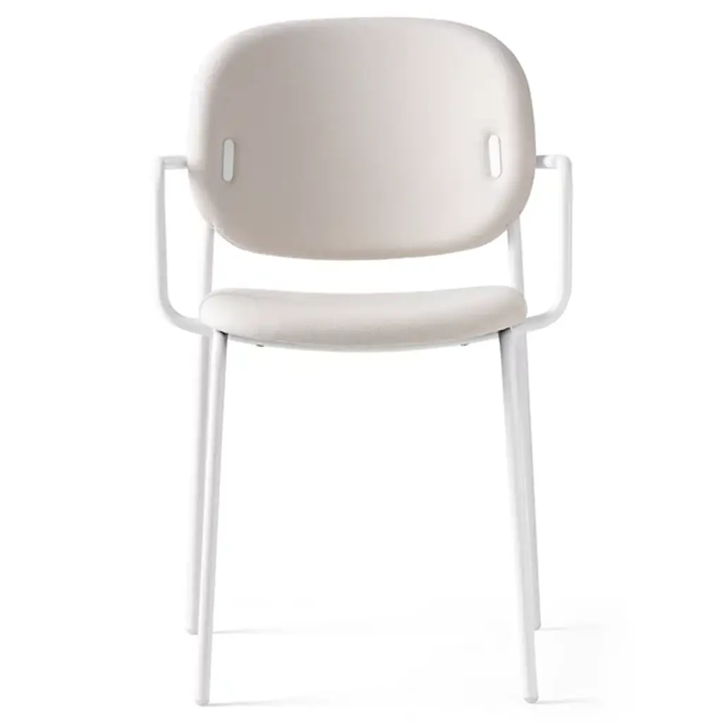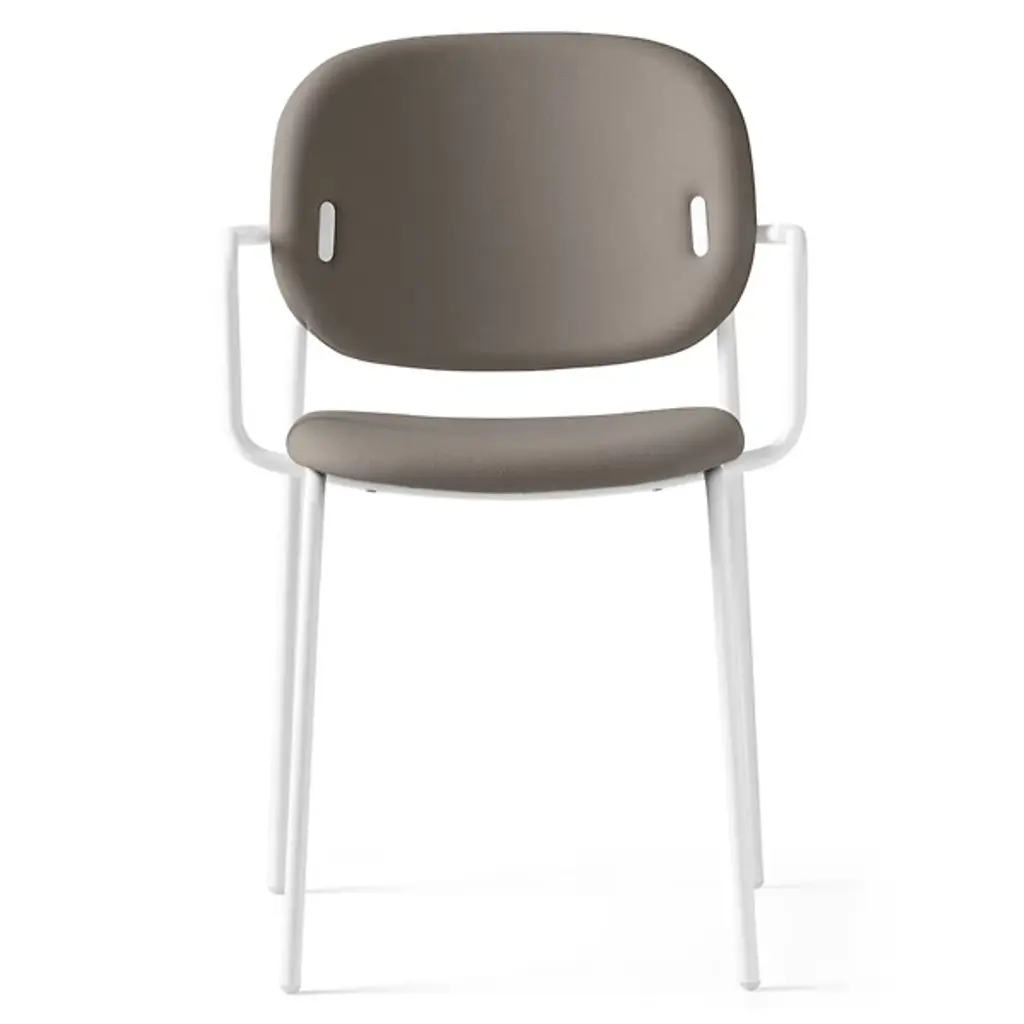 An enduring statement. The Yo! Upholstery Armchair from Connubia puts a dressy aesthetic and versatility in placement first with a minimalist design. The armchair complements a range of floorplans as a lightweight piece with a slender profile. Its tubular metal framework guides the eye all around with tight curves and spacious openings. This framework bends to create a stackable construction with comfortable armrests. The back and seat rest feature sculpted curves to caress the body. Plump foam and a soft polyester upholstery work together to create longer, more comfortable seating sessions.