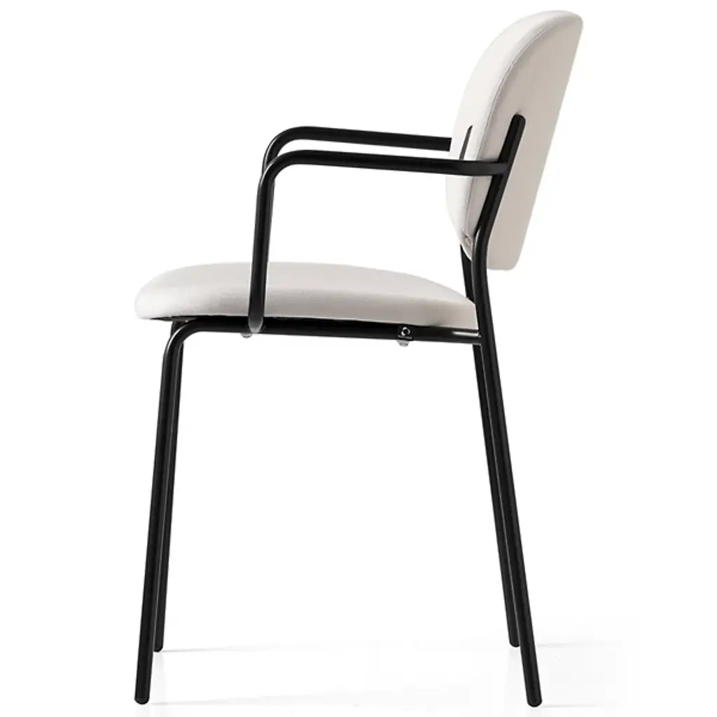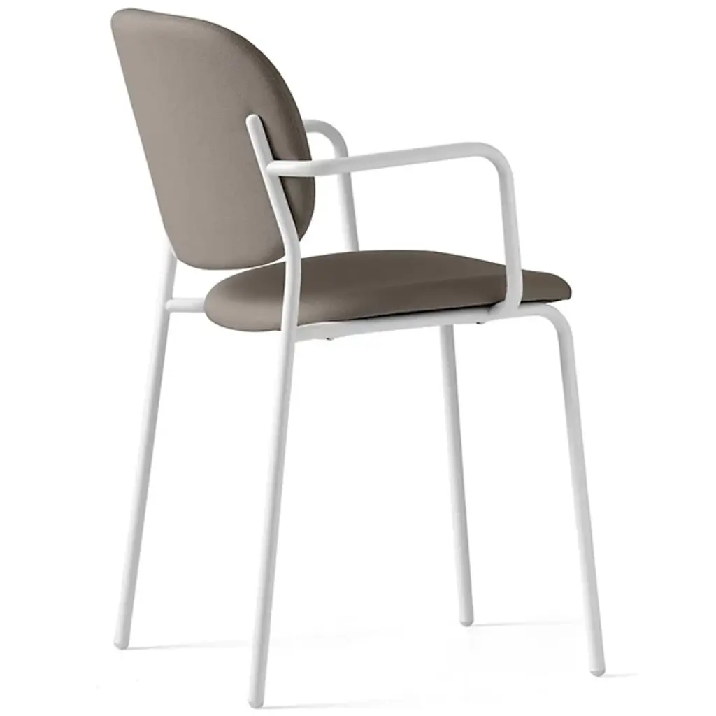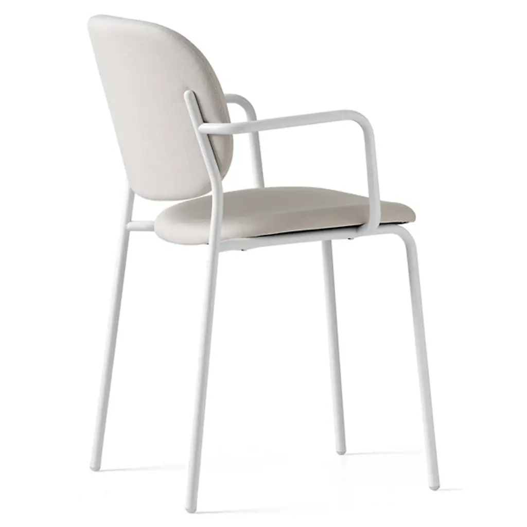 An enduring statement. The Yo! Upholstery Armchair from Connubia puts a dressy aesthetic and versatility in placement first with a minimalist design. The armchair complements a range of floorplans as a lightweight piece with a slender profile. Its tubular metal framework guides the eye all around with tight curves and spacious openings. This framework bends to create a stackable construction with comfortable armrests. The back and seat rest feature sculpted curves to caress the body. Plump foam and a soft polyester upholstery work together to create longer, more comfortable seating sessions.