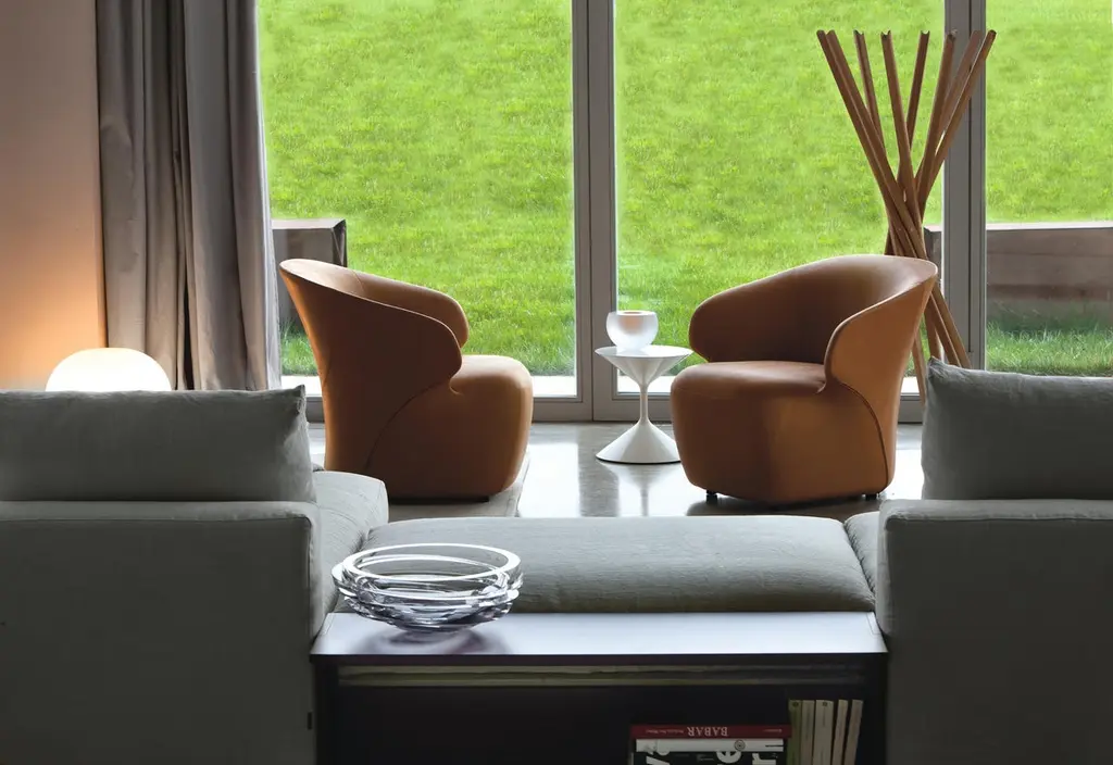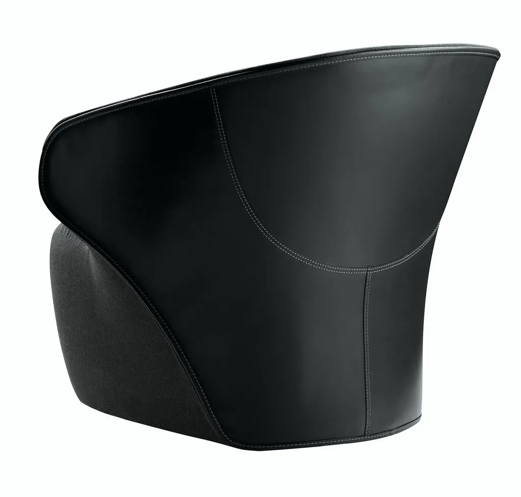 Zanotta Arom Armchair In Black Talasso Fabric And Exterior In Black Cowhide