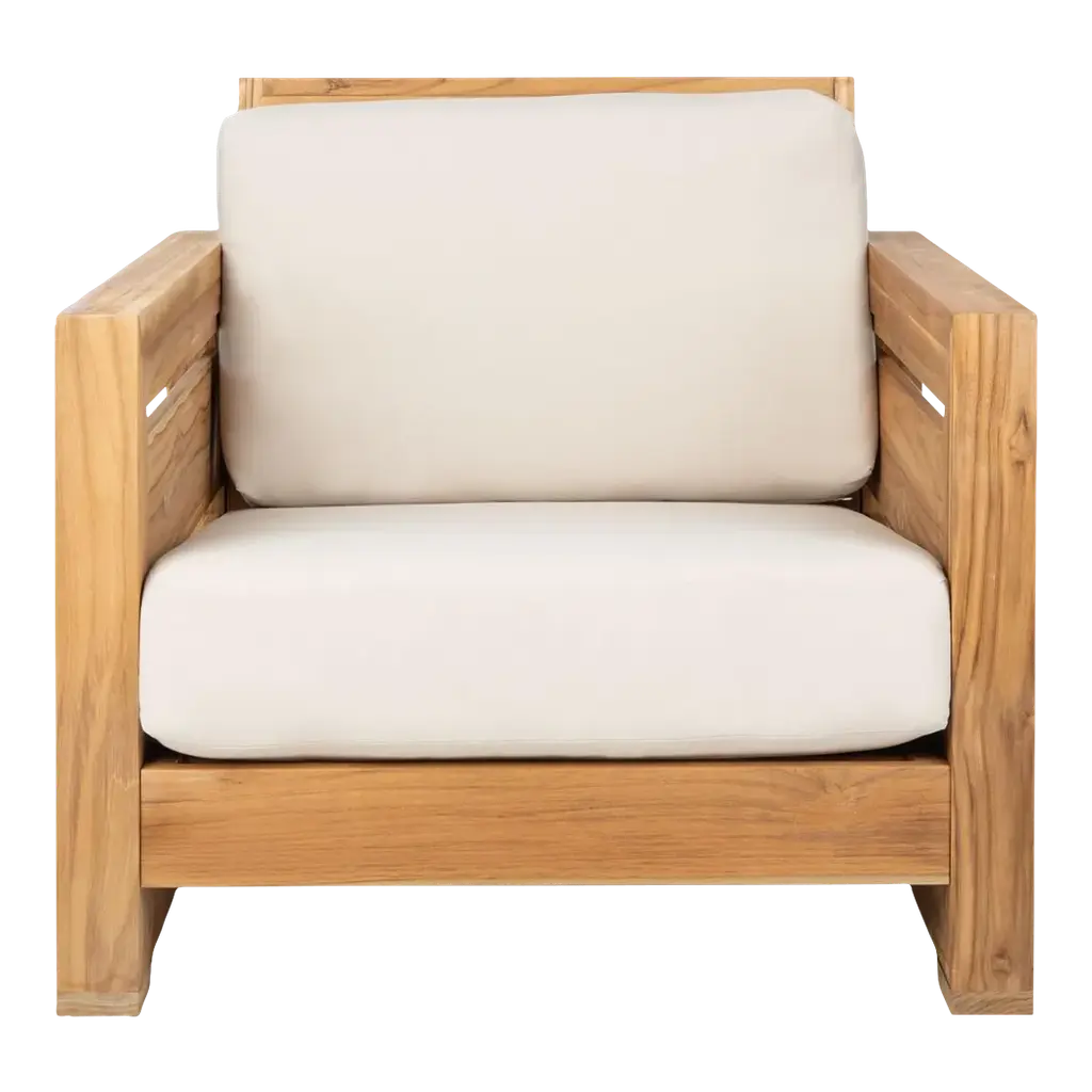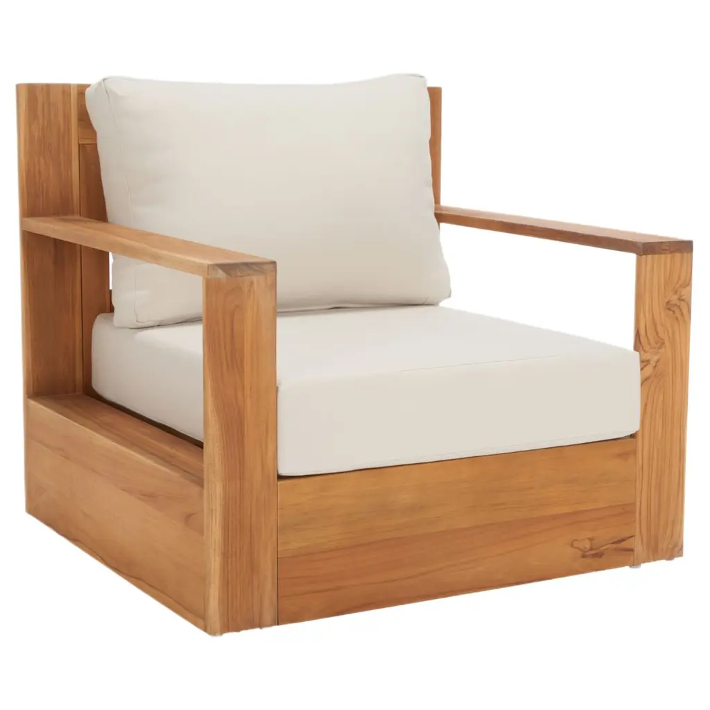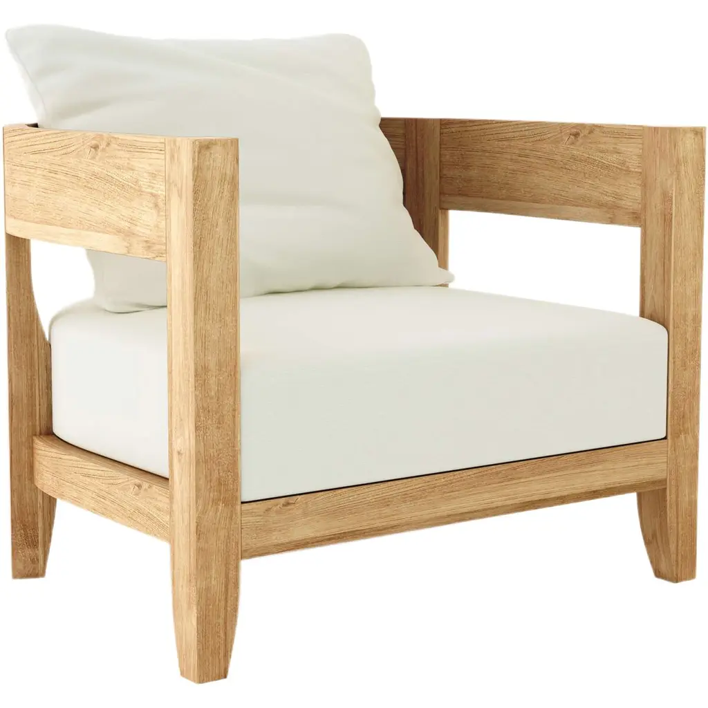 Made from genuine solid teak of premium quality, the Zavira Deep Seating Armchair is a sleek modern design furniture perfect for the yard and outdoors. Perfect as a standalone armchair to be used singly with a side or coffee table to match, it can also be paired with another armchair, or add more pieces from the Zavira Deep Seating Collection to create your own 6-8 piece outdoor deep seating set. Includes all-weather cushions with your choice of pattern and color.
