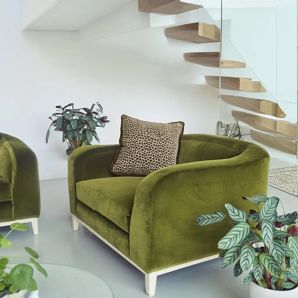 Zeno Eco Olive Green Velvet Armchair By Brian Sironi