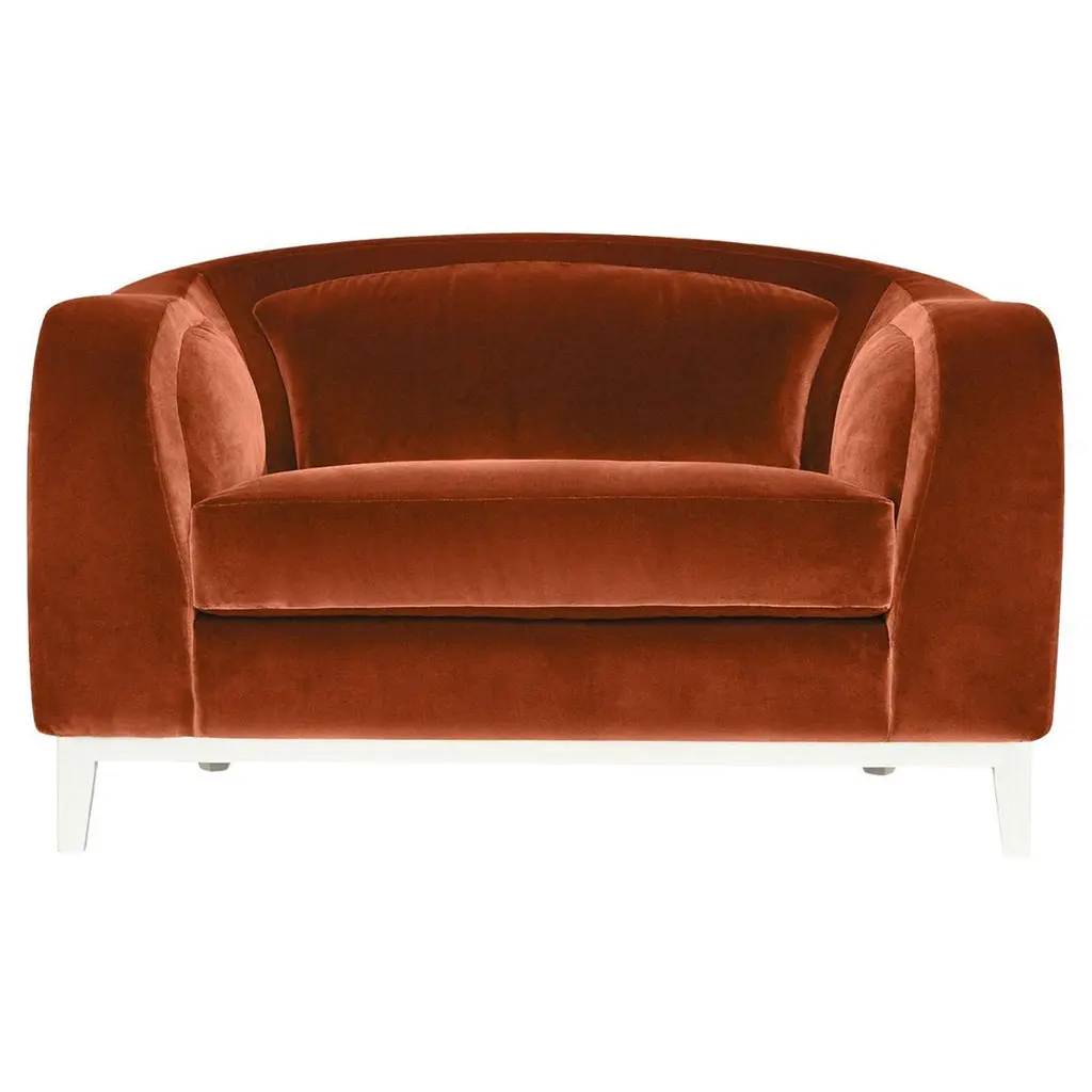 The Zeno Eco Armchair combines contemporary design with classic elegance, crafted to enhance any living space with its stylish presence. This armchair features a compact silhouette, making it an ideal choice for modern interiors while still offering the warmth of mid-century design. Constructed from solid beech wood, the sturdy frame provides a stable foundation, complemented by jute belts and steel springs that ensure durability and comfort. The seating is generously padded with 100% natural latex and a layer of goose down, enveloped in soft, removable velvet covers. Designed to be both functional and aesthetically pleasing, this armchair offers a cozy retreat for leisurely afternoons or vibrant gatherings, embodying a perfect blend of style and sustainability with its 100% natural and biodegradable materials. Available in a variety of fabrics, contact the Concierge for more details.