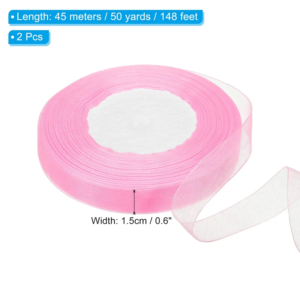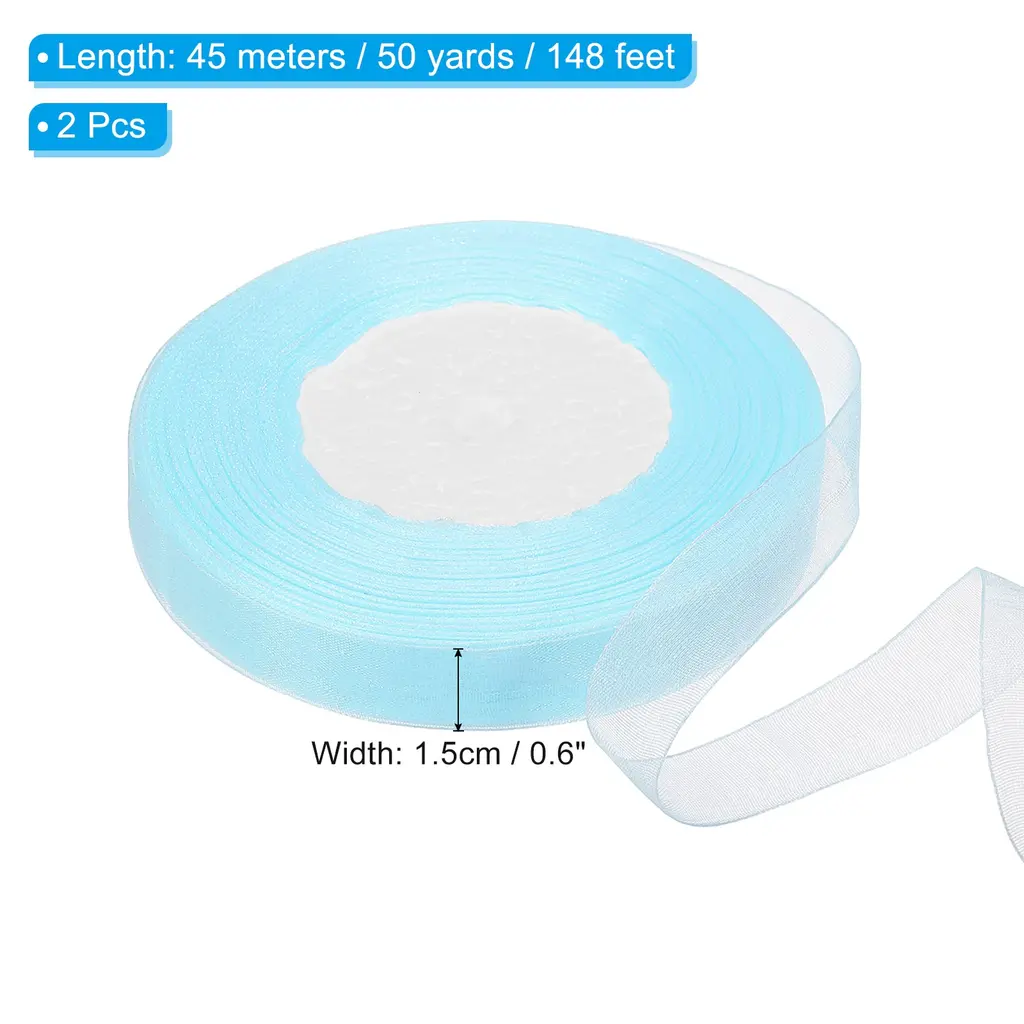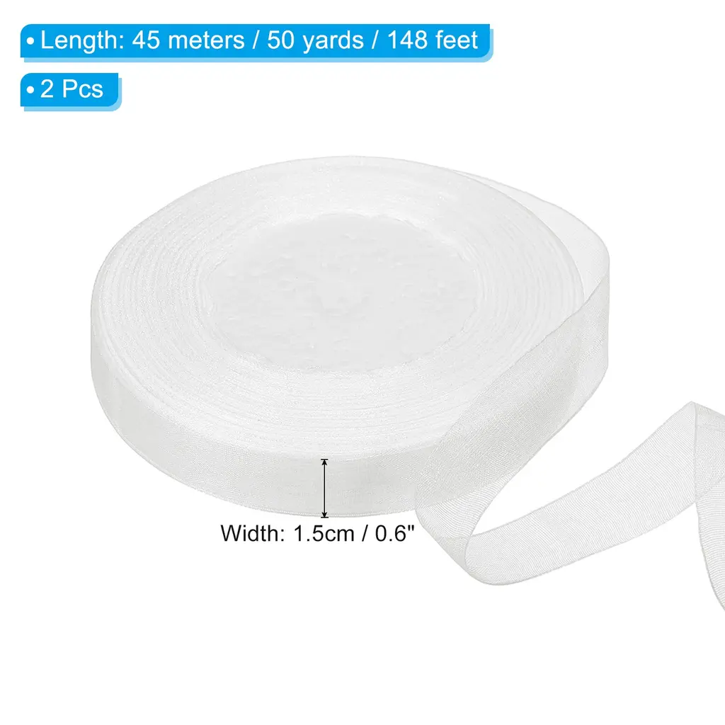 This organza ribbon is suitable for decorating various items to add beauty. Not only suitable for wrapping holiday gifts, it can also be used to decorate bouquets or cakes, enhance your home decoration, add beauty to your daily crafts, and create a high-end and sophisticated feeling.SpecificationColor: WhiteMaterial: ChiffonSize: 45m x 1.5cm /50 yard x 0.6 inch (LxW)Package List: 2 Roll x RibbonAdvantage:The floral ribbon is made of good quality chiffon material, which has a soft texture, good breathability, drape, easy to design shape when decorating gifts, and also has good wear resistance so that can extend the service life. Moreover, the decorative ribbon with a semi-transparent color does not easily fade, ensuring long-term beauty. Organza chiffon ribbons of any length can be cut according to needs for handmade designs, DIY birthday gifts, doors, bouquets, cakes, etc.InstructionUse scissors to cut to the length of the organza ribbon you want and you can start decorating.NOTEDue to lighting effects, monitor brightness contrast settings, etc., there may be slight differences in the color tone between the film and the actual object. Please allow a 1-2 cm difference due to manual measurement.
