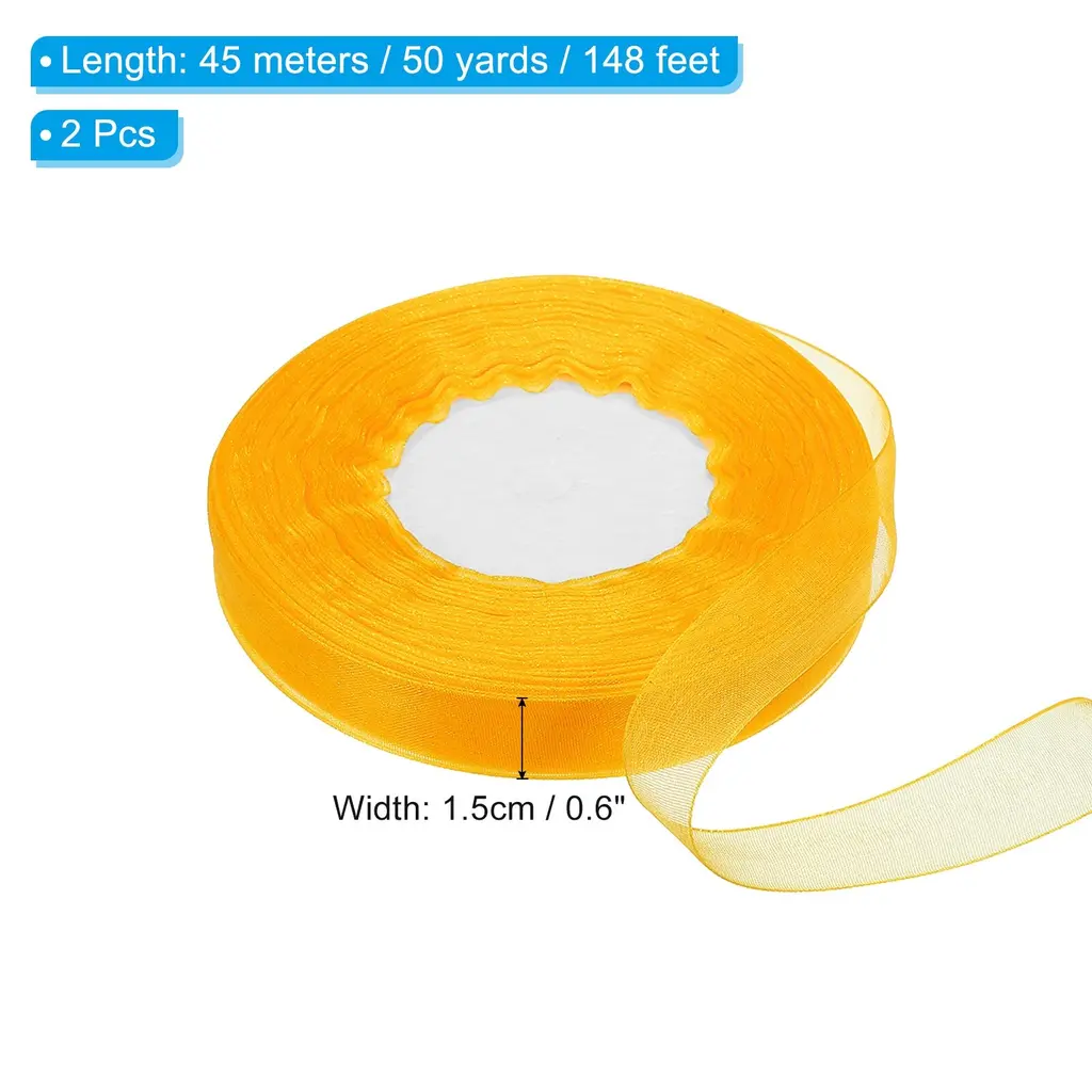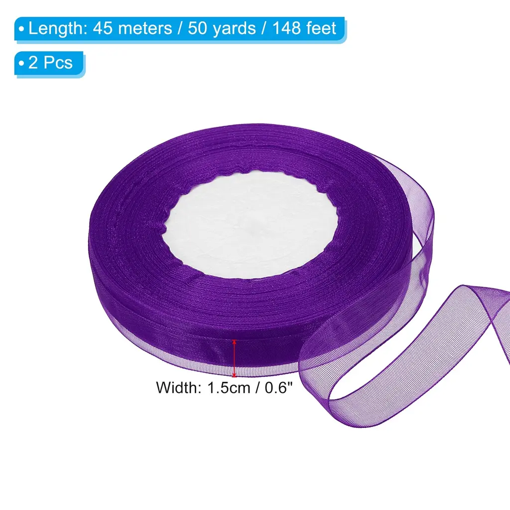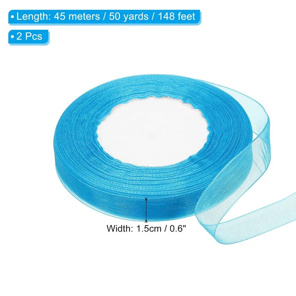 This organza ribbon is suitable for decorating various items to add beauty. Not only suitable for wrapping holiday gifts, it can also be used to decorate bouquets or cakes, enhance your home decoration, add beauty to your daily crafts, and create a high-end and sophisticated feeling.SpecificationColor: WhiteMaterial: ChiffonSize: 45m x 1.5cm /50 yard x 0.6 inch (LxW)Package List: 2 Roll x RibbonAdvantage:The floral ribbon is made of good quality chiffon material, which has a soft texture, good breathability, drape, easy to design shape when decorating gifts, and also has good wear resistance so that can extend the service life. Moreover, the decorative ribbon with a semi-transparent color does not easily fade, ensuring long-term beauty. Organza chiffon ribbons of any length can be cut according to needs for handmade designs, DIY birthday gifts, doors, bouquets, cakes, etc.InstructionUse scissors to cut to the length of the organza ribbon you want and you can start decorating.NOTEDue to lighting effects, monitor brightness contrast settings, etc., there may be slight differences in the color tone between the film and the actual object. Please allow a 1-2 cm difference due to manual measurement.