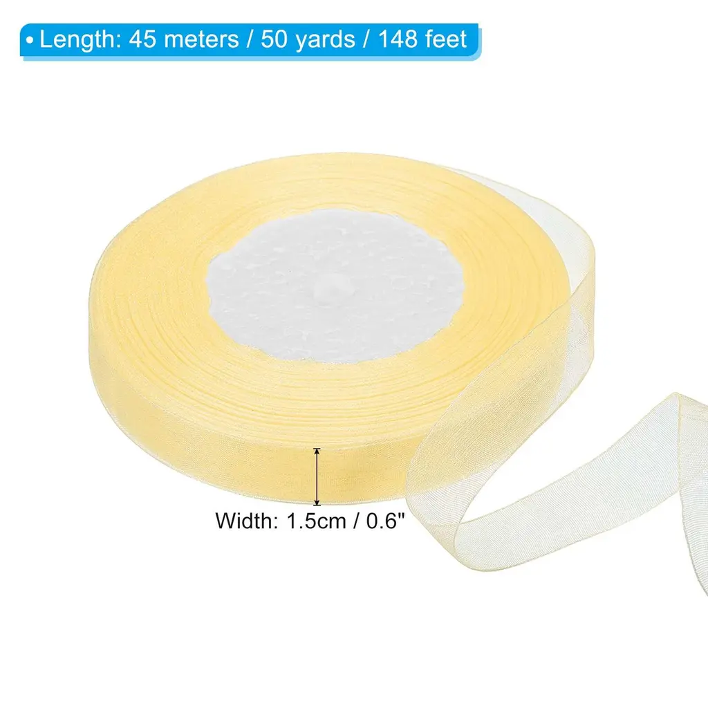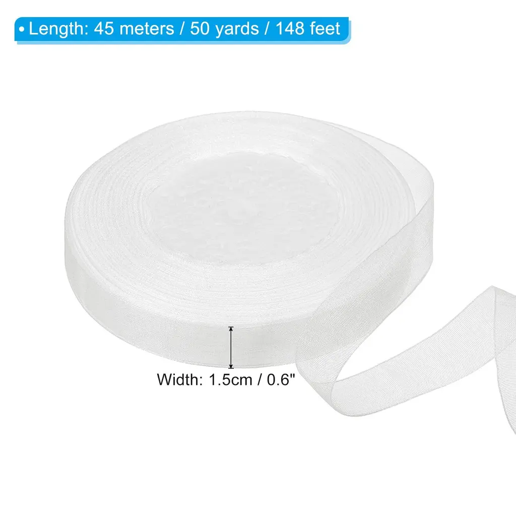 This organza ribbon is suitable for decorating various items to add beauty. Not only suitable for wrapping holiday gifts, it can also be used to decorate bouquets or cakes, enhance your home decoration, add beauty to your daily crafts, and create a high-end and sophisticated feeling.SpecificationColor: WhiteMaterial: ChiffonSize: 45m x 1.5cm /50 yard x 0.6 inch (LxW)Package List: 1 Roll x RibbonAdvantage:The floral ribbon is made of good quality chiffon material, which has a soft texture, good breathability, drape, easy to design shape when decorating gifts, and also has good wear resistance so that can extend the service life. Moreover, the decorative ribbon with a semi-transparent color does not easily fade, ensuring long-term beauty. Organza chiffon ribbons of any length can be cut according to needs for handmade designs, DIY birthday gifts, doors, bouquets, cakes, etc.InstructionUse scissors to cut to the length of the organza ribbon you want and you can start decorating.NOTEDue to lighting effects, monitor brightness contrast settings, etc., there may be slight differences in the color tone between the film and the actual object. Please allow a 1-2 cm difference due to manual measurement.