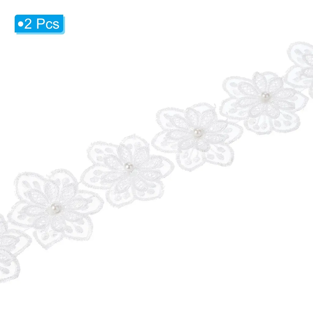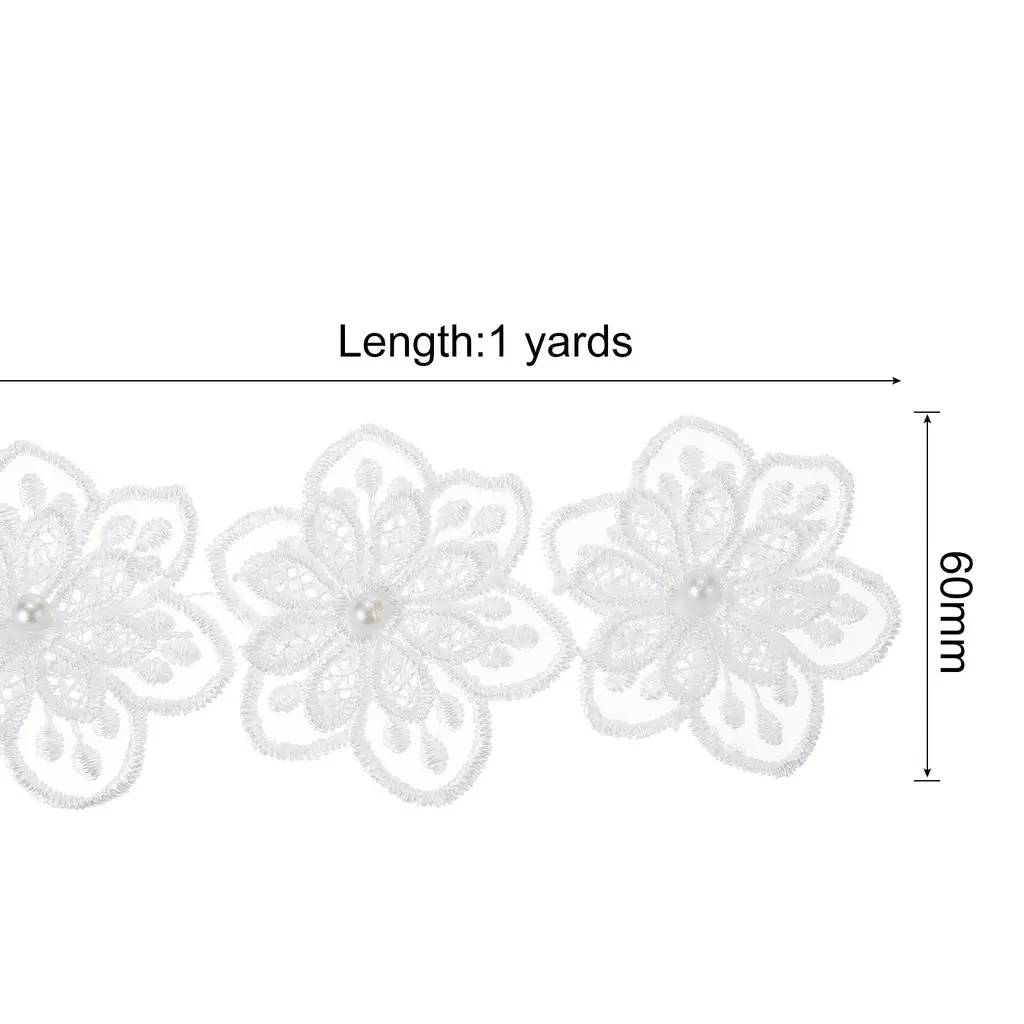 This product is great for adding a decorative touch to various crafts, DIY projects, and embellishments. Suitable for a wide range of crafting projects, including weddings, sewing, scrapbooking, clothes, curtains, cardmaking, costume making, hair accessories, home decor, gift wrapping, and more.SpecificationColor: WhiteMaterial: Polyester, Faux PearlSize: 1 Yards x 60mm(L*W)Packing List: 2 x Flower Lace TrimAdvantageThe ribbon features vibrant and delicate flower designs that add a charming and elegant aesthetic to your creations. This flower ribbon is durable, ensuring it retains its shape and color over time. The flexible and easy-to-handle nature of the ribbon makes it effortless to cut, shape, or attach to different surfaces or materials.InstructionCut the length according to your crafting needs, then sew them to the surface of the object. The floral lace ribbon is suitable for different fabrics.NOTE: Please check the size carefully before purchasing.