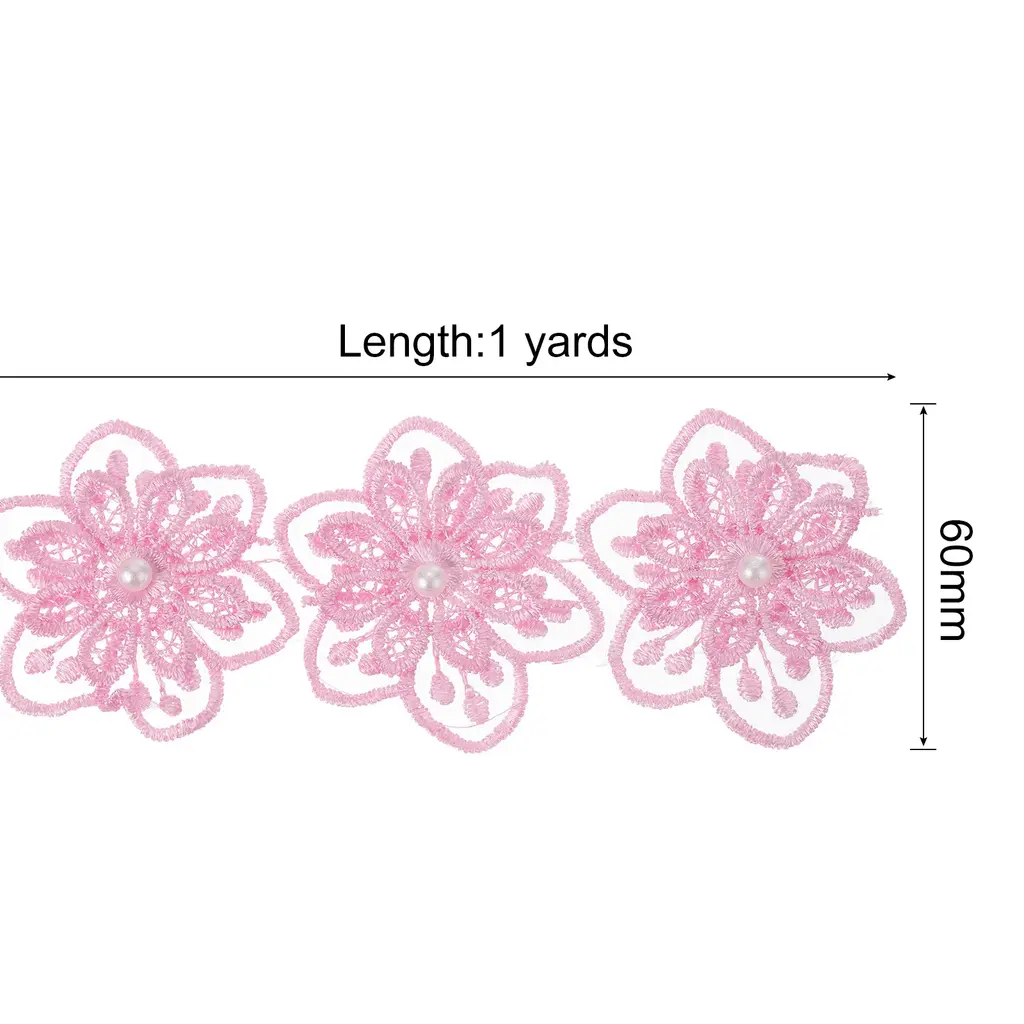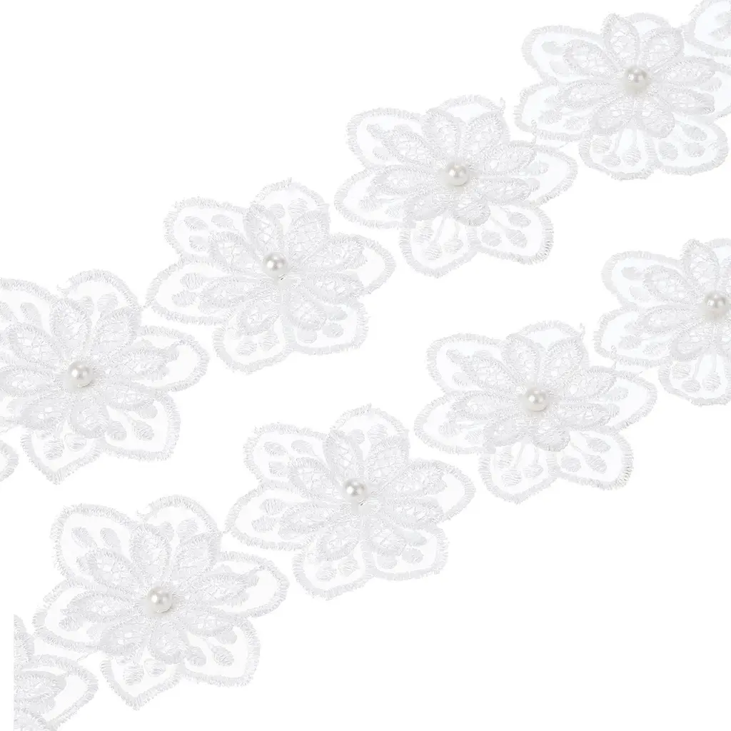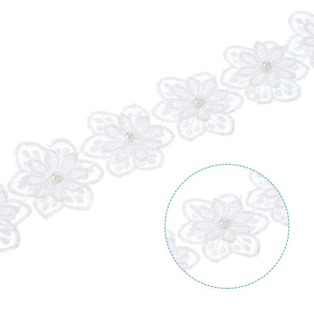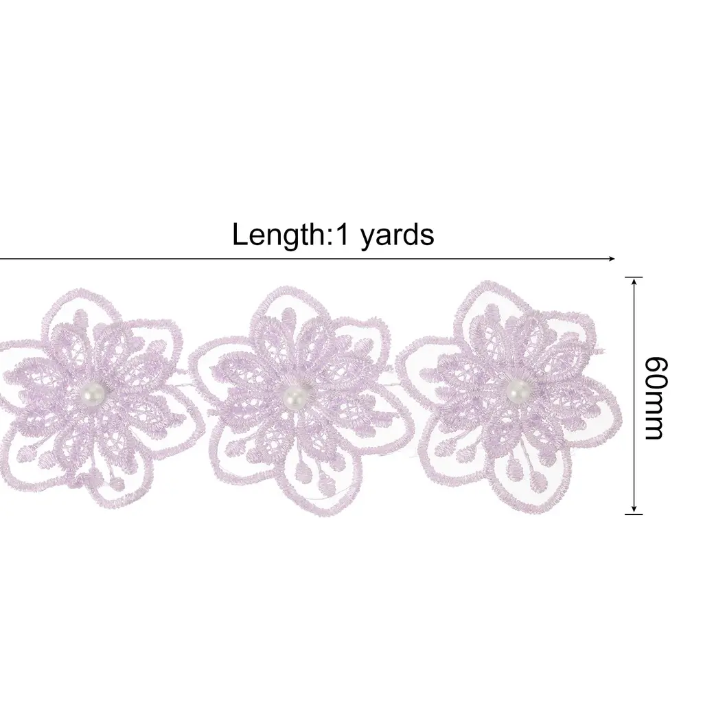 This product is great for adding a decorative touch to various crafts, DIY projects, and embellishments. Suitable for a wide range of crafting projects, including weddings, sewing, scrapbooking, clothes, curtains, cardmaking, costume making, hair accessories, home decor, gift wrapping, and more.SpecificationColor: WhiteMaterial: Polyester, Faux PearlSize: 1 Yards x 60mm(L*W)Packing List: 2 x Flower Lace TrimAdvantageThe ribbon features vibrant and delicate flower designs that add a charming and elegant aesthetic to your creations. This flower ribbon is durable, ensuring it retains its shape and color over time. The flexible and easy-to-handle nature of the ribbon makes it effortless to cut, shape, or attach to different surfaces or materials.InstructionCut the length according to your crafting needs, then sew them to the surface of the object. The floral lace ribbon is suitable for different fabrics.NOTE: Please check the size carefully before purchasing.