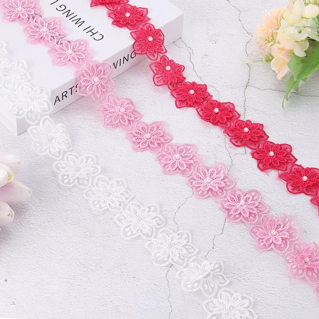 1 Yards Flower Trim Ribbon, 2Pcs Floral Lace Ribbon Pearl Style 1 - Red