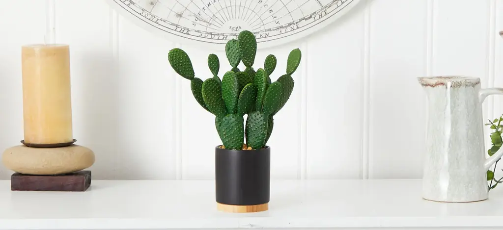 Bring those desert vibes to any area with this maintenance-free 10in Cactus Succulent Artificial Plant in Planter. Inspired by the Arizonian desert and crafted by horticulturists, the spiky, dark-colored leaves add depth and texture to any space. Made from high-quality materials, this trendy plant will last year after year. Perfect for a living room, desktop to home office. Silk plants are manufactured using synthetic materials, such as polyester material or plastic, and are well designed and constructed to be life-like in appearance. This item will need to be re-shaped when removed from the secure box to allow it to reach its fullest size.