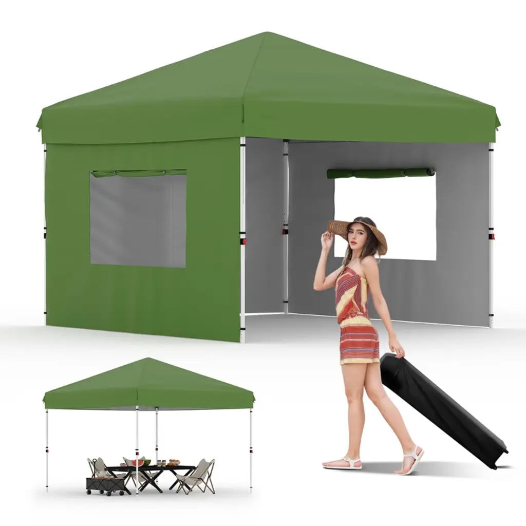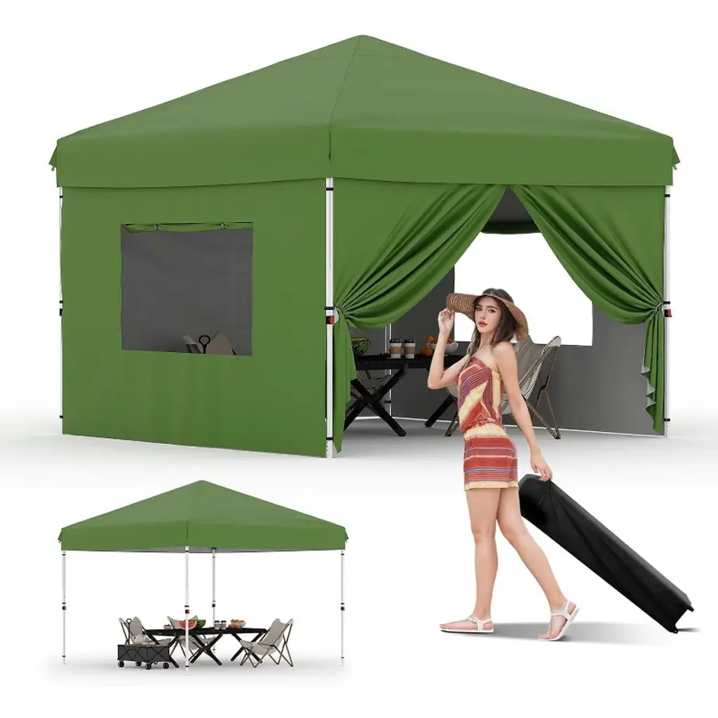 Experience full protection and professional-grade convenience with this 10x10FT Instant Pop-Up Canopy Tent, designed for seamless setup and reliable shelter at outdoor events. Complete with four removable 210D Oxford fabric side walls, this canopy creates a fully enclosed space offering privacy and robust weather defense ¡ª perfect for vending, festivals, trade shows, and private gatherings. Setting up is a breeze with the patented push-button mechanism and pre-assembled heavy-duty steel frame, enabling one person to erect the tent in under a minute without any tools or complicated assembly. The commercial-grade canopy boasts UPF 50+ sun protection (blocking 99% of harmful UV rays) and a 3000mm waterproof rating, while the removable side walls protect against sun, wind, rain, and dust for reliable all-weather use. Designed for professional stability, the tent includes four industrial-strength 10lb sandbags, eight galvanized steel stakes, and four reinforced polyester guy ropes, ensuring it stays anchored even in windy conditions. This complete package comes ready for immediate use with the main canopy, four zippered side walls, an oversized wheeled transport bag, and all necessary stabilization accessories ¡ª no extra purchases required for your commercial or personal outdoor needs. Dimensions: 10 ft x 10 ft footprint Material: 210D Oxford fabric canopy and side walls, heavy-duty steel frame What You Get: One pop-up canopy tent with 4 removable side walls, zippered entrance, sandbags, stakes, guy ropes, wheeled transport bag, and assembly instructions After-Sales Service: Customer support available for setup guidance and product inquiries