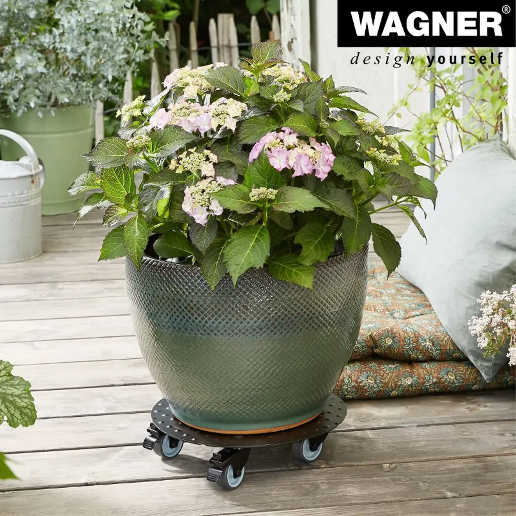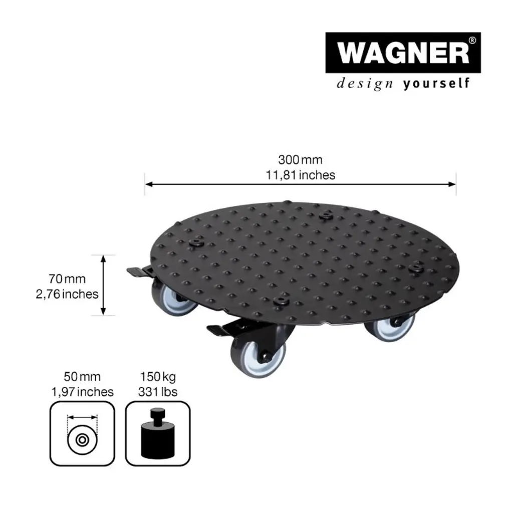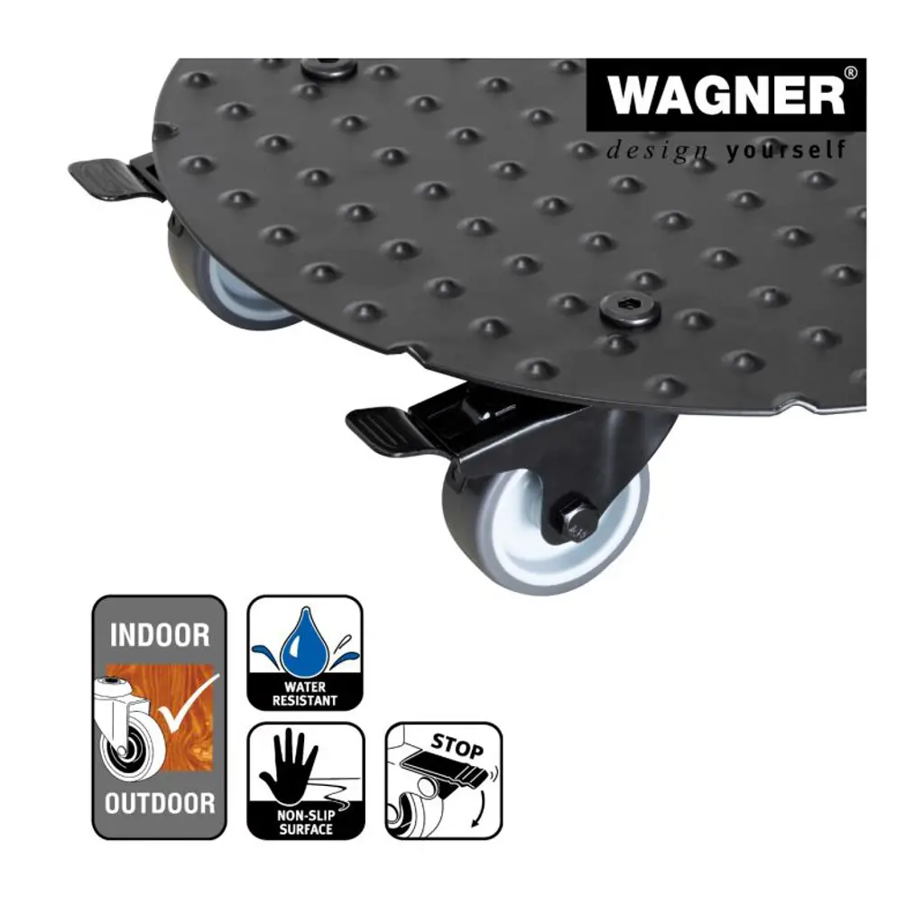 Give your plants a sturdy and stylish base with the Wagner Medium Round Black Aluminum Plant Caddy, designed for both function and aesthetics. Crafted from solid, rust-free diamond-plated aluminum, this lightweight yet heavy-duty caddy supports up to 331 lbs., making it perfect for large planters. Soft equipment casters glide smoothly over all surfaces without scratching or marring floors, while two locking brakes provide stability and secure positioning. The textured non-slip surface ensures pots stay in place, making it ideal for indoor and protected outdoor areas. Made in Germany, this plant caddy offers superior durability and long-lasting performance.