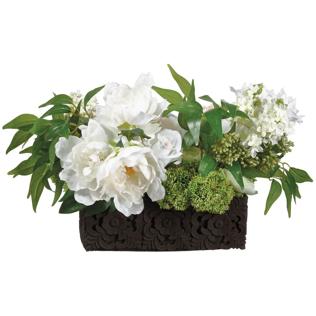 12.5" Mix lilac/rose/peony Arrangement In Carving pot, Faux