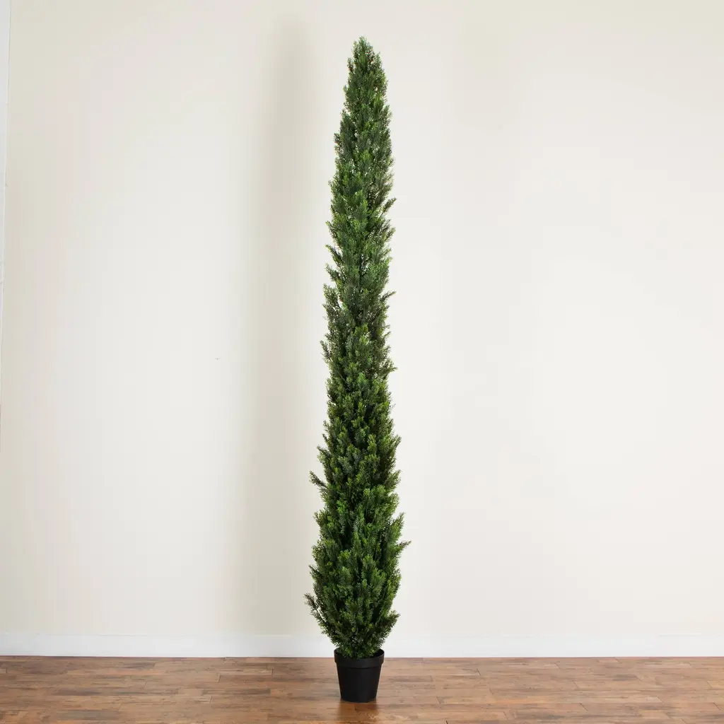 This UV resistant artificial ceda tree, a bestseller inspired by the lush forests of the Pacific Northwest, offers a maintenance-free, lifelike presence. Tall and leafy, these trees boast a large silhouette that will impress in any indoor or outdoor space. The flexible branches allow for a customized look. At a striking 12-Ft from a nursery planter, this tree suits any setting and transitions smoothly from holiday charm to summer elegance.